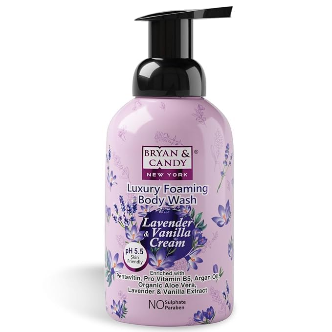 Luxury Foaming Body Wash with Pentavitin,Pro Vit B5,Argan Oil,Aloe Vera, Skin Friendly pH 5.5, All Skin Types, 400 Ml (Lavender & Vanilla)