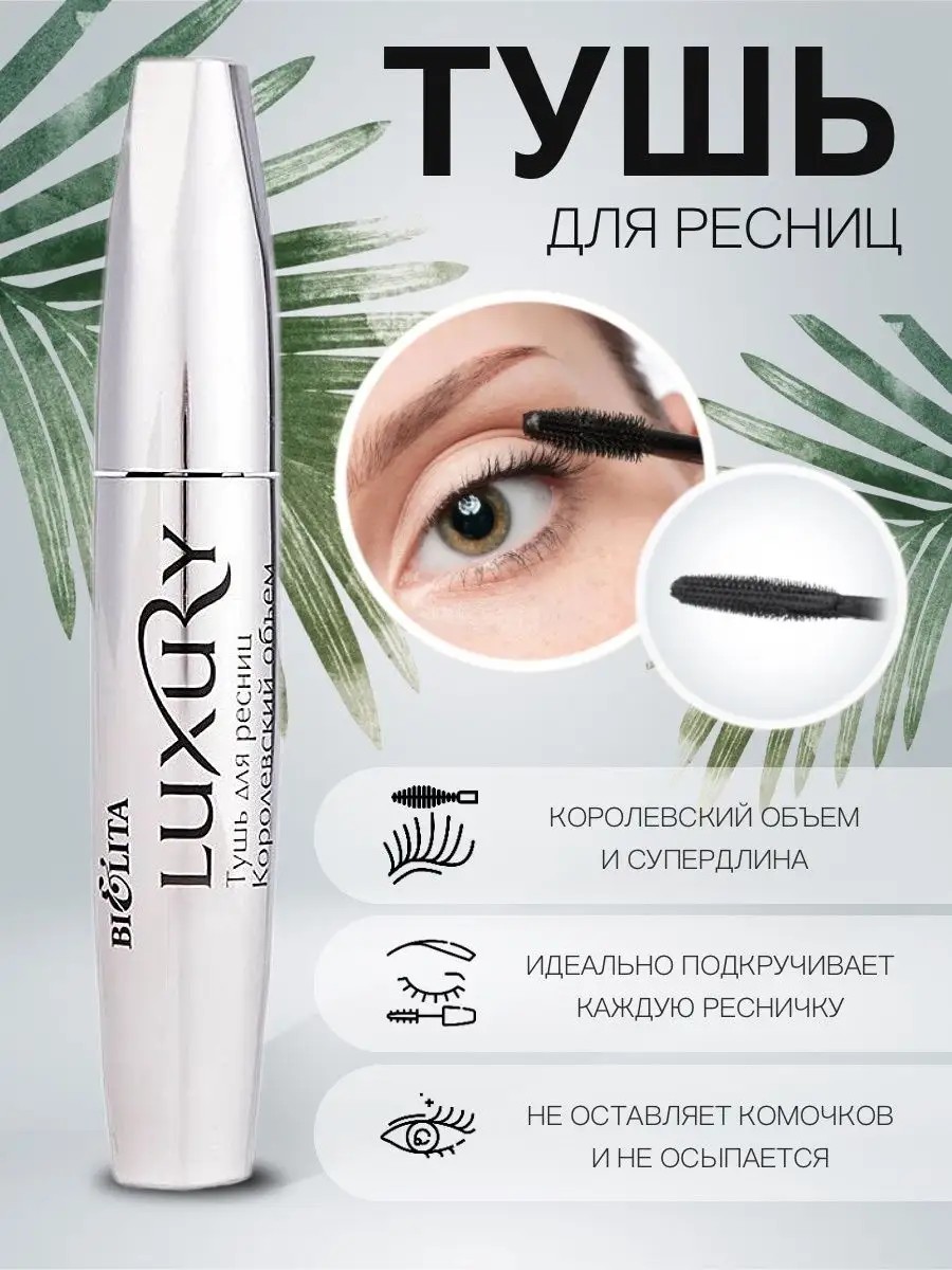 Тушь для ресниц черная белорусская подкручивающая удлиняющая «Королевский объем» и удлинение 1шт. Белорусская серебристая Тушь Luxury королевский объем от БЕЛИТА всего за несколько секунд сделает ваш взгляд глубоким и притягательным! С помощью удобной силиконовой кисточки вы без труда нанесете продукт – щеточка тщательно разделяет и делает каждую ресничку длиннее и объемнее. Забудьте о комках и осыпании – с тушью Luxury ваш макияж продержится весь день. Кроме того, это роскошное средство для ресниц обеспечит им питание и уход благодаря натуральным ингредиентам и растительным воскам в составе. В нашем магазине вы найдете большой выбор белорусской косметики от популярных брендов БЕЛИТА и ВИТЭКС по разумным ценам.