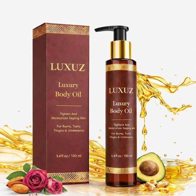 Indulge in elevated skincare with LUXUZ Luxury Body Firming Oil, a fast-absorbing and non-greasy body oil created for smooth, hydrated, and healthy-looking skin. This lightweight formula glides effortlessly onto the skin, absorbing quickly to leave a soft, silky feel without heaviness. Formulated with a premium botanical blend, including Sweet Almond Oil, Rosehip Oil, and Vitamin E, this luxurious body oil helps nourish the skin while supporting long-lasting hydration. Each ingredient is carefully selected to enhance skin softness and promote a naturally radiant appearance. Ideal for daily use, the smooth texture makes it perfect for applying after showering or as part of your nighttime self-care routine. With consistent use, skin feels more moisturized, comfortable, and refreshed. Suitable for all skin types, LUXUZ Luxury Body Firming Oil can be applied to areas such as arms, thighs, stomach, and the entire body. Designed to deliver a spa-inspired experience at home, it's the perfect addition to any modern body care routine. Experience refined body care with LUXUZ — where luxury meets everyday skincare.SPA-INSPIRED SELF-CARE EXPERIENCE – Designed for all skin types and suitable for use on areas such as thighs, arms, stomach, and body for a relaxing, luxurious skincare ritual. HYDRATING DAILY BODY CARE – Helps lock in moisture and improve the look of dry or dull skin, leaving it feeling supple, comfortable, and refreshed throughout the day. BOTANICAL BLEND WITH VITAMIN E – Enriched with Sweet Almond Oil, Rosehip Oil, and Vitamin E to help nourish skin, support moisture retention, and enhance overall skin softness. FAST-ABSORBING NON-GREASY FORMULA – Smooth texture absorbs quickly into the skin without stickiness or heavy residue, making it ideal for everyday body care routines. LUXURY BODY FIRMING OIL – A lightweight body oil designed to help skin feel smoother, softer, and more refined with daily use. Leaves a silky finish while supporting a healthy-looking appearance.