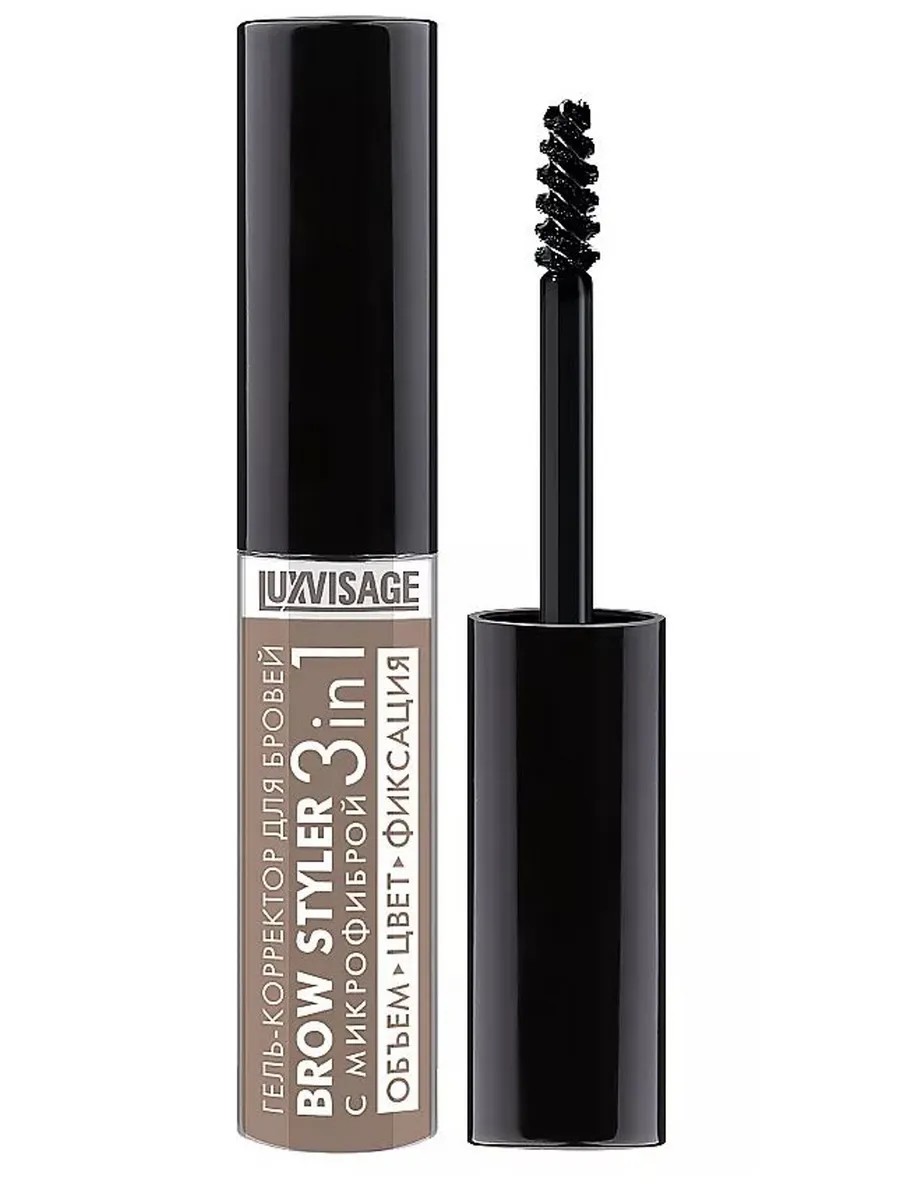 Luxvisage Brow Styler Gel Corrector, Shade 01 Latte, 5.8 g. This tinted gel gives brows definition and a naturally well-groomed look, providing firm hold. A professional stylist brush carefully colors brow hairs and shapes them, while special microfibers in the gel add volume and thickness. The long-lasting gel texture perfectly holds brows and maintains their shape without clumping or creating a "wet" effect. The gel is available in 4 shades to match any natural hair color. With the Brow Styler gel corrector, your brows will be well-groomed, defined, and natural!