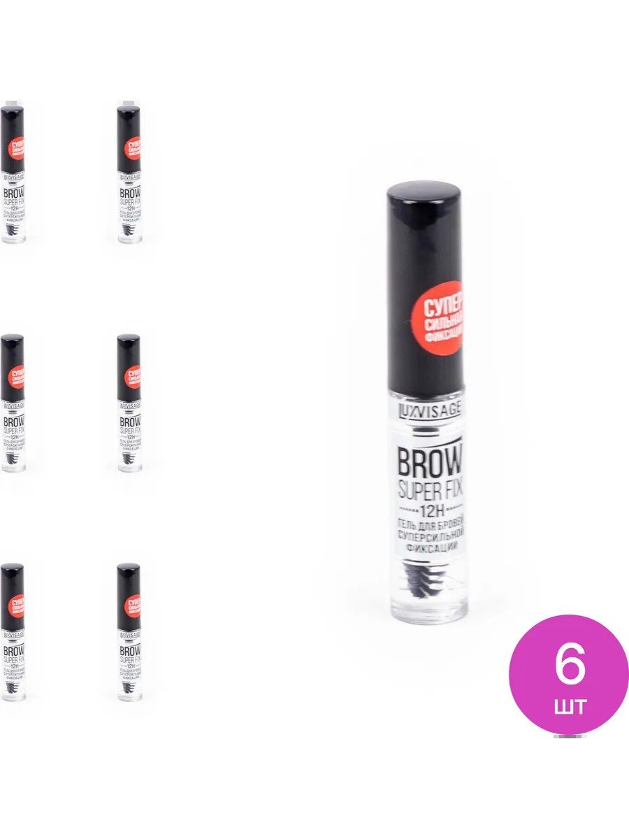 LUXVISAGE BROW SUPER FIX 12H Гель для бровей бесцветный 6г, 6 шт