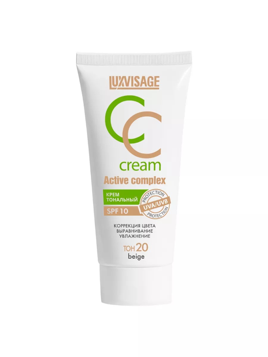 LuxVisage Тональный крем CC Active complex SPF10, тон 20 beige. Корректирующий и выравнивающий тональный крем с солнцезащитным фактором SPF10. Тональная основа идеально подстраивается под тон кожи, улучшает её естественный оттенок, обеспечивает максимальную цветокоррекцию. Крем тональный для лица уменьшает видимость расширенных капилляров, покраснений, скрывает пигментацию. Уникальные оптические микросферы, входящие в состав формулы превосходно выравнивают текстуру кожи, заполняют поры и мелкие морщинки. Стойкий тональный крем для лица создает естественный полуматовый финиш. Содержит солнцезащитный фактор SPF 10. luxvisage тональный крем защищает кожу от УФ-излучения широкого спектра, вредного воздействия UVA и UVB-лучей, фотостарения. Тональный крем для лица luxvisage обладает легкой кремовой текстурой, не сушит кожу и дарит ей ощущение комфорта благодаря увлажняющему комплексу ElfaMoist. Отлично наносится и распределяется. Обладает средней степенью покрытия, позволяя наслаивать и регулировать его плотность. Стойко держится на коже весь день. Идеально подходит для сухой, чувствительной, смешанной и возрастной кожи. Способ применения: Нанесите крем на кожу лица, равномерно распределите пальцами, спонжем или кистью. Этот продукт от белорусского производителя гарантирует профессиональный уход и стойкость макияжа на протяжении всего дня. Белорусский тональный крем для лица станет отличным подарком для любой женщины. Его можно преподнести как на праздники: новый год, 8 марта, День рождения или День святого Валентина, так и просто без повода.