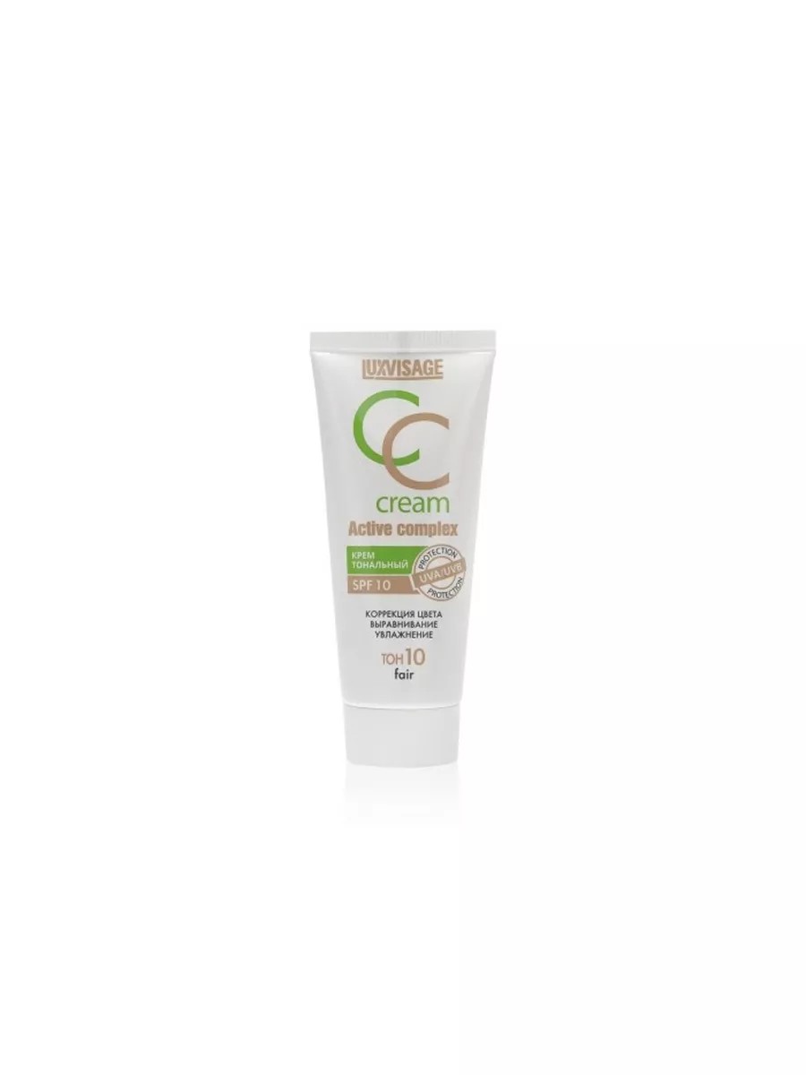 Gender: for women Application area: for face Type/Consistency: CC cream Process: for makeup Line/Series: Active Complex Skin type: all skin types Packaging (ml/gram): 35g SPF (sun protection): SPF 10 Brand: Luxvisage Country of origin: Belarus Protection: protective function Evening out skin tone: evens out skin tone Shade: 10 Finish: matte Weight: 45g Width: 4.4cm Length: 2.8cm Height: 11cm