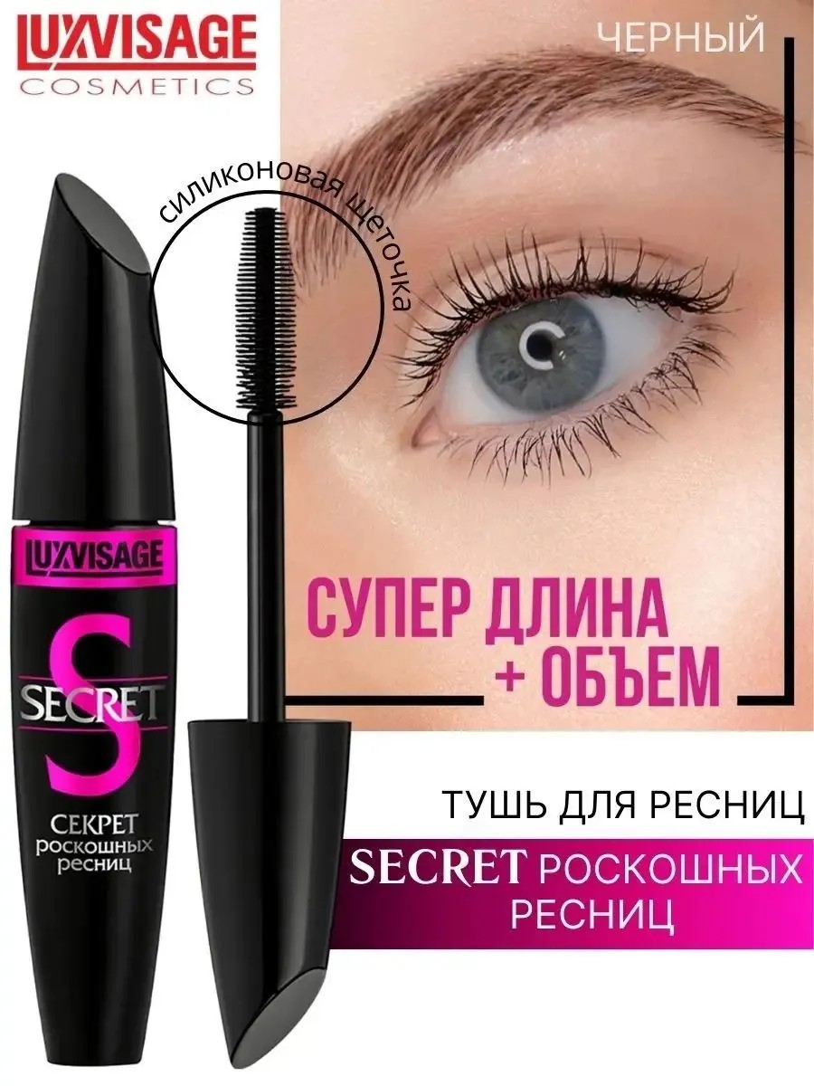 Тушь СЕКРЕТ роскошных ресниц с эффектом максимального удлинения и выразительного объема ресниц. Воздушная кремовая текстура в сочетании с силиконовой щеточкой с густыми гибкими щетинками гарантирует легкое и равномерное нанесение туши от корней до самых кончиков ресниц. Не склеивает ресницы, не оставляет отпечатков и не осыпается в течение дня. Тушь в оттенке горького шоколада идеально дополнит дневной и естественный макияж, подчеркнет цвет глаз и сделает взгляд более мягким и нежным. Для снятия макияжа очищения и увлажнения кожи используйте пенку для умывания, тоник или тонер, молочко для снятия макияжа. Наш бренд Люксвизаж не хуже популярных брендов из Кореи, корейская косметика. Соберите бьюти-бокс подарочный набор из качественной женской декоративной косметики - карандаш для бровей, карандаш для губ, подводка для глаз, тени для глаз, пудра, румяна, тональный крем, бальзам для губ, помада, блеск для губ, тушь для ресниц, хайлайтер, скульптор, основа под макияж, жидкость для снятия лака, лак для ногтей. Это будет лучший подарок для сестры, мамы, подруги, коллеги, для подростков, подарок для девушек и взрослых женщин. Подарок на день рождения, подарок на свадьбу, подарок на выпускной, подарок на новоселье. У нас есть акции и распродажи, вы можете купить наши товары в подарок со скидкой!