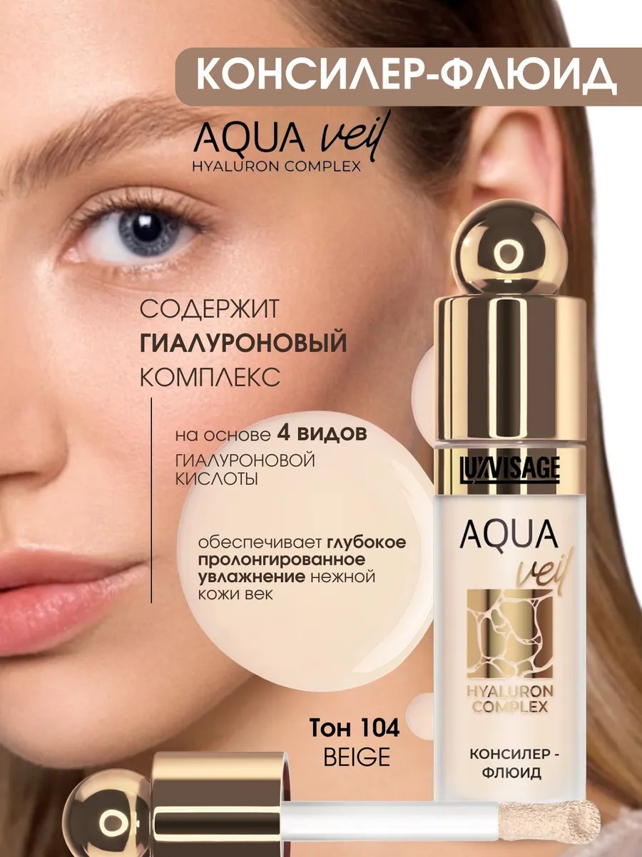 Преставлен в 4-х оттенках. Для идеального выравнивания тона используйте консилер в комплексе с тональным кремом- флюидом AQUA veil HYALURON COMPLEX LUXVISAGE.
