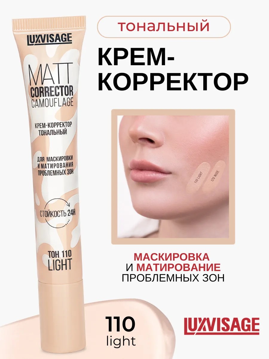 Эффективное средство для коррекции проблемных зон. Высокопигментированный крем-корректор MATT CORRECTOR CAMOUFLAGE идеально маскирует проблемные зоны на лице: покраснения, мелкие сосуды, пигментацию и темные круги под глазами. Содержит светоотражающие Soft focus микросферы, которые визуально выравнивают рельеф кожи, делают ее ровной и гладкой. Эффективно поддерживает матовость кожи на протяжении всего дня, особенно в Т-зоне и области подбородка. Не подчеркивает шелушения, не забивается в поры и мелкие морщинки. Суперстойкая формула. Покрытие сохраняет стойкость до 24 часов, не меняет цвет, устойчиво к воздействию пота и влажности. Не отпечатывается. Создает ровное плотное покрытие без эффекта маски, также может использоваться в качестве тонального покрытия на все лицо. Матирующий крем для лица MATT CORRECTOR CAMOUFLAGE - это идеальная основа для вашего макияжа. Этот стойкий и легкий крем поможет вам матировать жирную кожу, скрыть пигментные пятна и покраснения, а также выровнять тон кожи. Он подходит для всех типов кожи, включая чувствительную и сухую. Благодаря своей уникальной формуле, крем подстраивается под цвет вашей кожи, обеспечивая натуральный финиш. Он идеально подходит для использования в летний период, так как не создает ощущения тяжести на коже. Крем тональный для лица матирующий также эффективен против веснушек и темных кругов под глазами. Нанесение крема будет простым, благодаря его легко распределяющейся текстуре. Благодаря удобному узкому носику тональная основа для лица экономично расходуется. Выбирайте свой тон для лица приближенный к естественному оттенку лица.