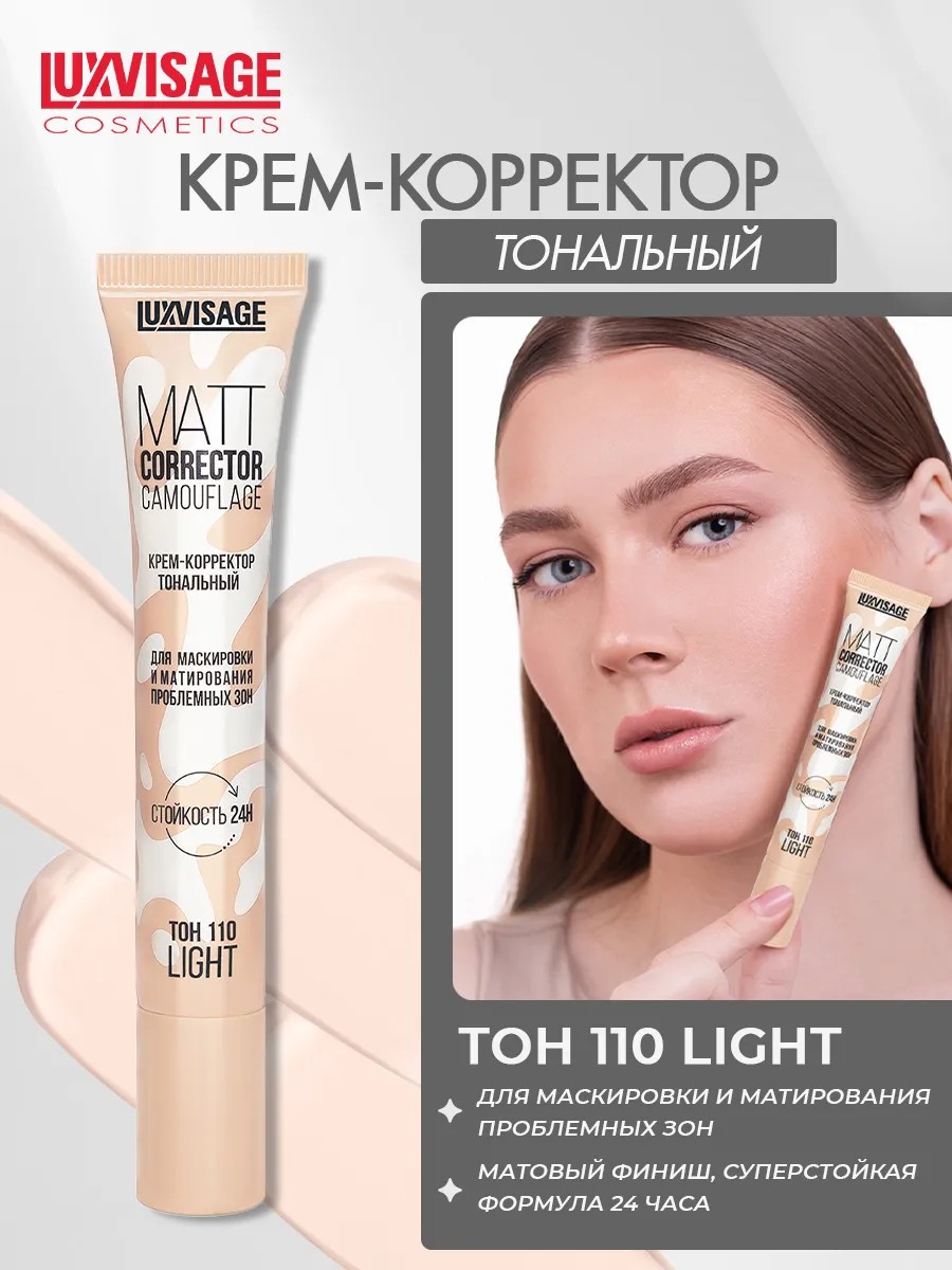 Тональный крем - корректор для лица серии MATT CORRECTOR CAMOUFLAGE Белорусского бренда LUXVISAGE (Люксвизаж) эффективное средство для коррекции проблемных зон. Высоко пигментированное средство идеально маскирует: покраснения, мелкие сосуды, пигментацию и темные круги под глазами. Создает ровное плотное покрытие без эффекта маски. Надежно поддерживает матовость кожи на протяжении всего дня, особенно в Т-зоне и области подбородка. Не подчеркивает шелушения, не забивается в поры и мелкие морщинки. Содержит Soft focus микросферы, которые визуально выравнивают рельеф. Суперустойчивая формула подходит для нанесения стойкого макияжа как в домашних условиях, так и для использования визажистами, который продержится всю вечеринку, сохраняет стойкость до 24 часов, не меняет цвет, устойчиво к воздействию пота и влажности. Сливается с кожей, превосходно сочетается с другими тональными средствами, не отпечатывается. Также может использоваться в качестве тонального покрытия на все лицо. Для эффективного применения рекомендуем наносить с помощью кисти или спонжа. Декоративная косметика от Люкс - визаж отличается хорошим составом по приятной цене и ничем не уступает популярным корейским и премиум брендам. У нас есть акции и распродажи, вы можете купить наши товары в подарок со скидкой!