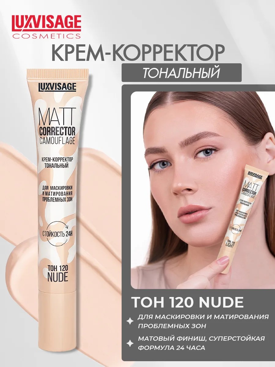 The MATT CORRECTOR CAMOUFLAGE foundation and corrector from the Belarusian brand LUXVISAGE is an effective solution for correcting problem areas. This highly pigmented product perfectly conceals redness, fine veins, pigmentation, and dark circles under the eyes. It creates an even, dense coverage without a mask effect. It reliably maintains a matte finish throughout the day, especially in the T-zone and chin area. It doesn't accentuate flaking, doesn't settle into pores, or fine wrinkles. Contains Soft Focus microspheres that visually smooth out the complexion. The super-stable formula is suitable for both at-home and professional makeup artists. It lasts all night, lasts up to 24 hours, doesn't change color, and is resistant to sweat and humidity. It blends seamlessly with skin, combines beautifully with other foundations, and doesn't transfer. It can also be used as a full-face foundation. For effective application, we recommend applying with a brush or sponge. Lux-Visage decorative cosmetics boast high-quality ingredients at a reasonable price, and are in no way inferior to popular Korean and premium brands. We have special offers and sales, and you can get our products as gifts at a discount!
