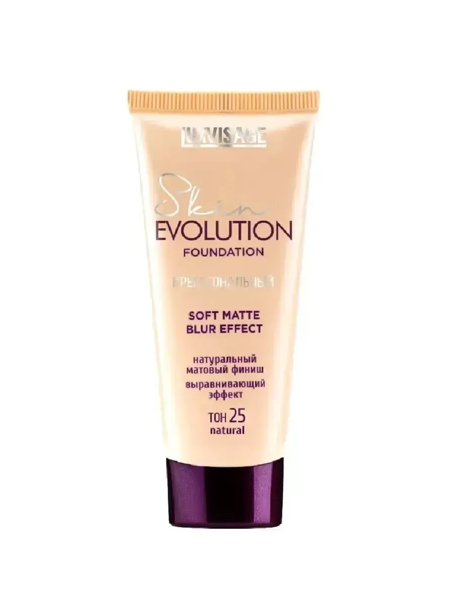 LUXVISAGE Тональный крем Skin Evolution Soft Matte Blur Effect, тон 25, natural, 35 мл. Тональный крем с натуральным матовым финишем и выравнивающим эффектом. Крем безупречно сливается с кожей и обеспечивает комфортное невесомое покрытие, придает коже «живой» матовый финиш, сохраняя максимальную естественность макияжа. Легкая комфортная текстура отлично распределяется, великолепно наслаивается, позволяя создать покрытие необходимой плотности – от средней до более плотной. Формула крема с пудровыми микросферами матирует и препятствует появлению жирного блеска. Придает коже мгновенный эффект размытого фокуса (blur effect), визуально разглаживает поверхность кожи, скрывает поры и мелкие морщинки. Тоновая гамма состоит из 6 натуральных оттенков на основе специально обработанных мелкодисперсных пигментов. Благодаря этому тональный крем обладает повышенной кроющей способностью, идеально выравнивает цвет лица, маскирует покраснения и пигментацию. Ухаживающая формула с инновационным комплексом ElfaMoist способствует глубокому и пролонгированному увлажнению в течение всего дня. Тональный крем подходит для всех типов кожи, обладает повышенной стойкостью, не требует коррекции в течение дня.