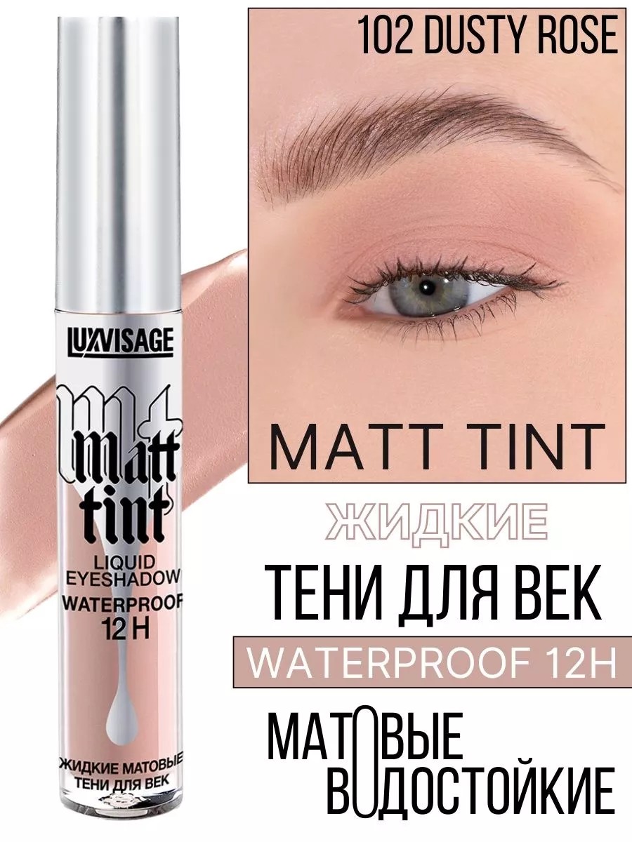 Матовые жидкие тени для век MATT TINT WATERPROOF 12H Белорусского бренда LUXVISAGE подарит бархатный финиш. Комфортная флюидная текстура легко наносится, равномерно ложится, быстро высыхает и фиксируется, не ощущается на коже, не сушит и не стягивает. Обладают высокой кроющей способностью и создают плотное и одновременно тонкое невесомое покрытие с первого слоя, не тускнеют и не скатываются, не отпечатываются, не размазываются и не трескаются, не западают в складочки. Обеспечивает точное нанесение точечно или на всю поверхность. Быстросохнущая водостойкая формула устойчива к воздействию воды, сохраняет превосходную стойкость и безупречный вид в течении всего дня, даже на нависших веках и склонной к жирности коже. Для эффективного использования нанесите при помощи мягкого аппликатора и распределите подушечками пальцев либо плоской кистью с искусственным ворсом. При необходимости до высыхания растушуйте границы пушистой кистью. Можно использовать как базу под компактные тени, чтобы усилить интенсивность цвета и создать стойкий макияж. Декоративная косметика Люкс визаж из Беларуси отличается отличным качеством и станет прекрасным дополнением женской косметички.