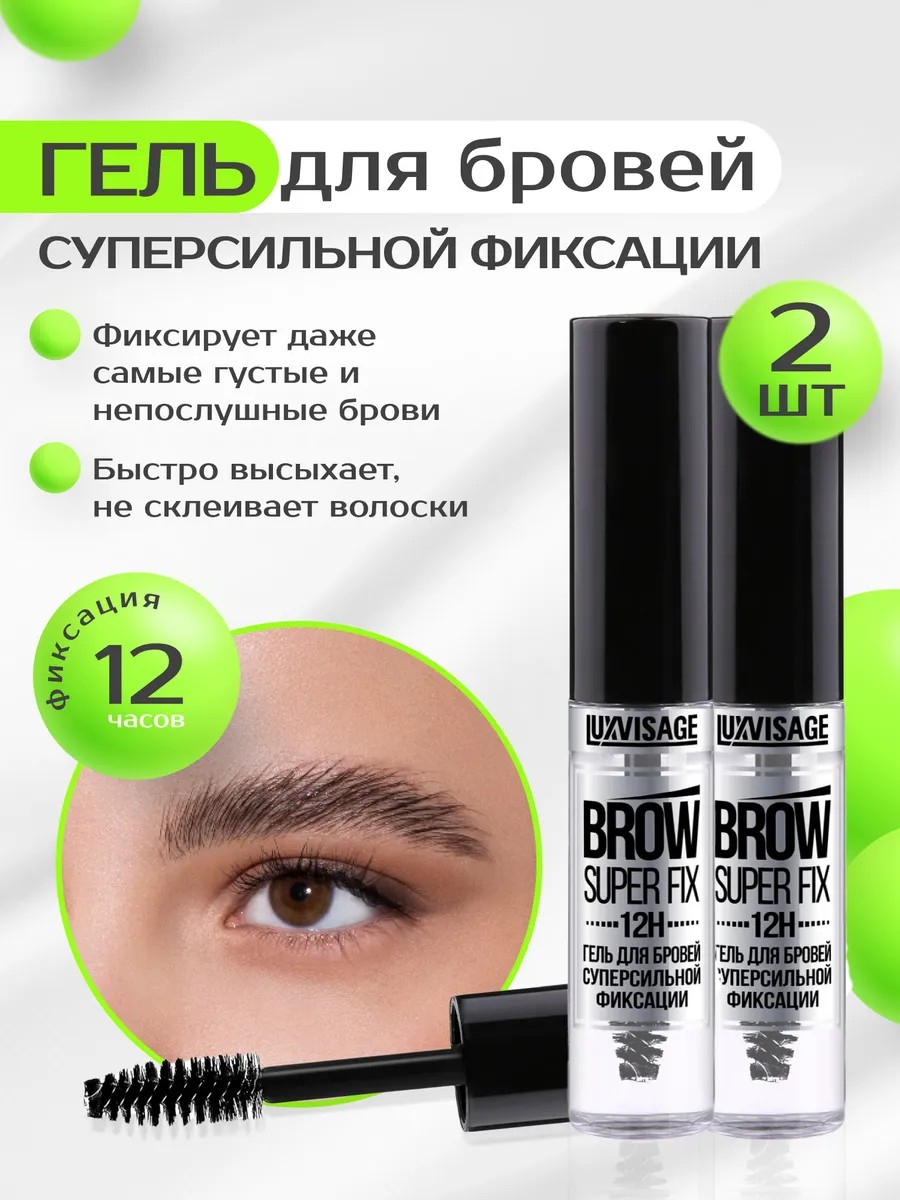 Гель бровей для фиксации набор 2 шт LUXVISAGE - настоящая находка. Гель для бровей super fix укладывает волоски в нужном направлении и фиксирует даже самые густые, жёсткие и непослушные брови на 12 часов.