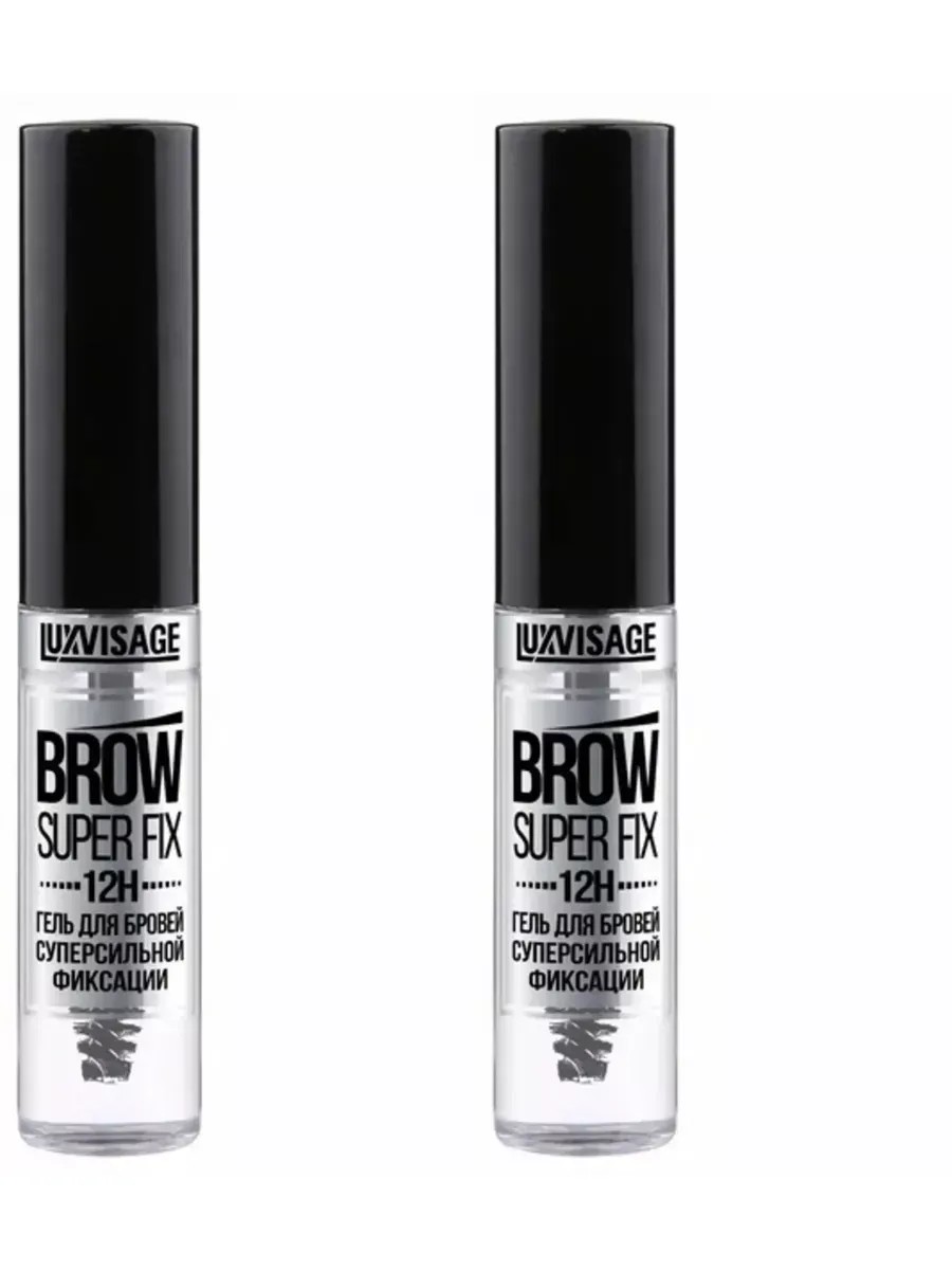 Luxvisage, гель для бровей суперсильной фиксации Brow Super Fix 12H Бесцветный, 2 штуки. Бесцветный гель-фиксатор моделирует форму бровей и обеспечивает суперсильную фиксацию волосков на 12 часов, укладывает в нужном направлении и фиксирует даже самые густые, жесткие и непослушные брови. Обволакивает волоски тонкой невидимой пленкой, визуально увеличивая объем и густоту бровей. Прозрачная текстура быстро высыхает и становится незаметной, сохраняя естественный вид бровей. Не оставляет белый налет, не склеивает волоски, не создает "мокрого" эффекта. Густая нейлоновая щеточка набирает оптимальное количество геля, равномерно распределяет его по всей длине волосков, идеально прочесывает и придает бровям желаемую форму. Прозрачная текстура позволяет использовать гель как самостоятельно, так и поверх любых средств для макияжа бровей. Д-пантенол питает и увлажняет волоски бровей, придает им прочность и эластичность.