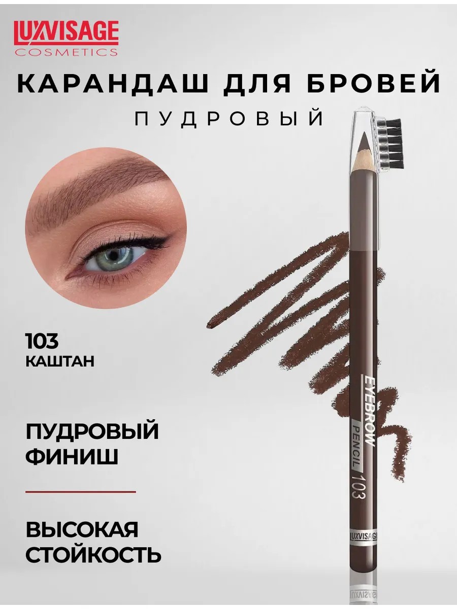 LUXVISAGE Карандаш для бровей стойкий пудровый со щеточкой 103 Каштан