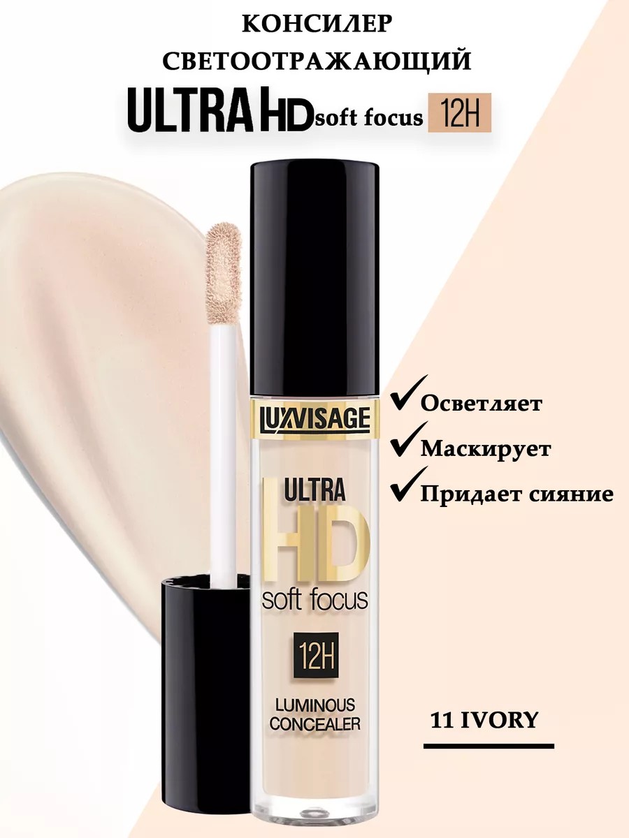 Косметика для макияжа Luxvisage представляет новинку консилер светоотражающий ULTRA HD soft focus 12 H.