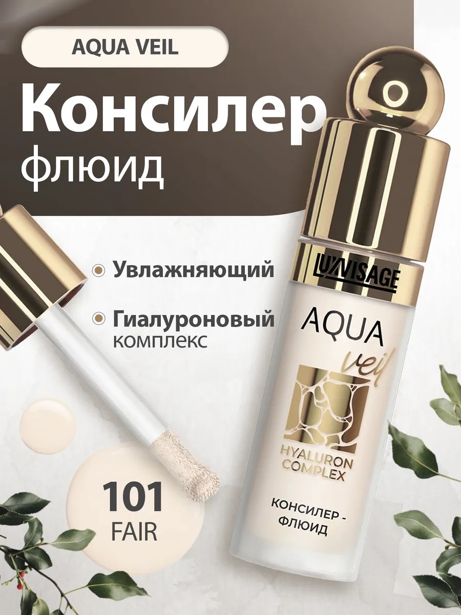 Консилер флюид для лица AQUA veil HYALURON COMPLEX тон 101 fair от белорусского бренда косметики LuxVisage - это идеальное решение для безупречного тона кожи век и маскировки темных кругов под глазами, мелких морщин, других несовершенств.