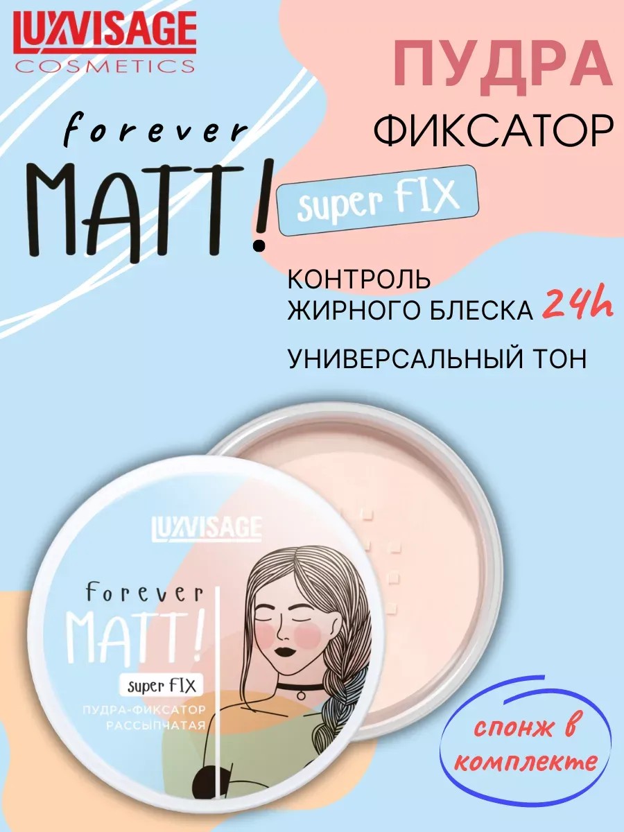 Пудра-фиксатор для лица Forever MATT! super FIX от белорусского бренда LUXVISAGE - идеальное решение для создания безупречного макияжа. Рассыпчатая пудра предназначена для матирования лица, обеспечивая долговременный и стойкий результат. Финишная пудра создает стойкое матовое покрытие, надолго сохраняет эффект гладкой и бархатистой кожи. Адсорбирует себум, контролирует появление жирного блеска 24h. Надежно закрепляет любые текстуры. Обеспечивает длительную фиксацию макияжа, сохраняет его безупречный вид в течение дня. Воздушная шелковистая пудра ложится на кожу лёгкой вуалью, визуально разглаживает рельеф кожи, уменьшает видимость пор и мимических морщин. Не вызывает ощущения сухости и стянутости, не проваливается в поры. Идеальна для жирной и комбинированной кожи. Пудра для лица матирующая прекрасно фиксирует макияж, предотвращая его смазывание и обеспечивая долговременную стойкость. Бесцветная, подходит для любого тона кожи, не изменяет цвет макияжа. С пудрой Forever MATT! от белорусской косметики Люкс Визаж длительный эффект безупречно матовой кожи гарантирован!