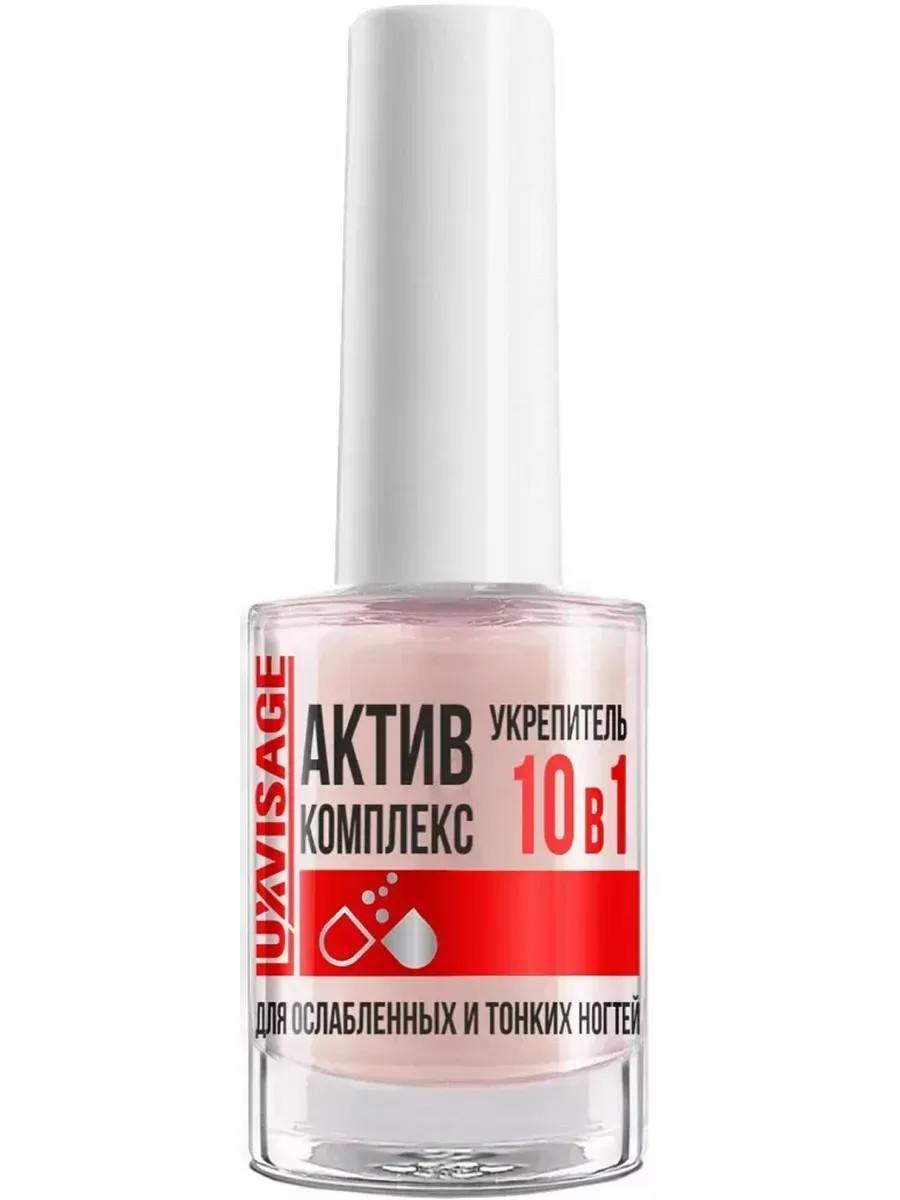 Luxvisage укрепитель 10 в 1 актив комплекс для ослабленных и тонких ногтей 9 гр, 1 шт. Укрепляющий лак для ногтей Актив Комплекс 10 в 1 - это мультифункциональное средство, способное интенсивно восстанавливать ослабленные ногти. Благодаря уникальному составу, он защищает ногти от ломкости, расслоения и обезвоживания, а также питает и увлажняет их. В лаке содержится комплекс активных компонентов, таких как масло семян подсолнечника, витамины С, Е, F, кальций, растительные протеины и экстракт бурых водорослей. Кроме того, этот лак можно использовать как базу под обычный лак, либо в качестве закрепителя. Его прозрачная текстура делает его идеальным для использования как базового покрытия, а умная формула обеспечивает железную защиту для ваших ногтей. Прозрачный нежный оттенок подходит для ежедневного использования. Этот лак для ногтей идеально подходит также для педикюра. Умный лак для ногтей - это инновационное решение для здоровья ваших ногтей. Ногти моментально приобретают здоровый и ухоженный вид. Средство выполняет функцию гель лака, выравнивая поверхность ногтя и маскируя видимые недостатки. Этот укрепляющий лечебный прозрачный лак для ногтей - это то, что вам нужно для укрепления и восстановления ваших ногтей. Закрепитель лака для ногтей быстро высыхает и не требует использования лампы. Стойкий лак создает плотную пленку на ногтях, которая отлично держится без сколов и отслаивания. Способ применения: нанесите средство для укрепления ногтей на чистые и сухие ногти в 1 или 2 слоя. Рекомендуем использовать не реже 2 раз в неделю.