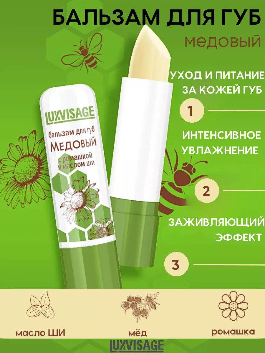 LUXVISAGE Бальзам для губ Медовый 3,9гр. с ромашкой и маслом ши