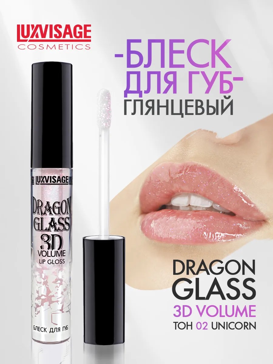 Суперглянцевый блеск для губ Dragon Glass 3D Volume тон 02 бренда Люкс визаж Белорусской косметики для макияжа обеспечивает зеркальное сияющее покрытие с эффектом трехмерного объема и ослепительного сияния, придает идеальную гладкость. Гелевая текстура в сочетании с удобной кисточкой - аппликатором превосходно ложится, равномерно распределяется и выравнивает поверхность, заполняет морщинки и трещинки. При регулярном использовании губы становятся более мягкими, объемными и увлажненными. Оставляет гладкое и комфортное покрытие без ощущения липкости, устраняет сухость, не растекается и не забивается в складочки. Подходит в качестве топа для придания визуального дополнительного объема и усиления яркости цвета. Прозрачные оттенки подарят влажный глянцевый лаковый финиш. Стойкий ультраглянцевый блеск с блестками долго держится и имеет приятный яркий аромат.