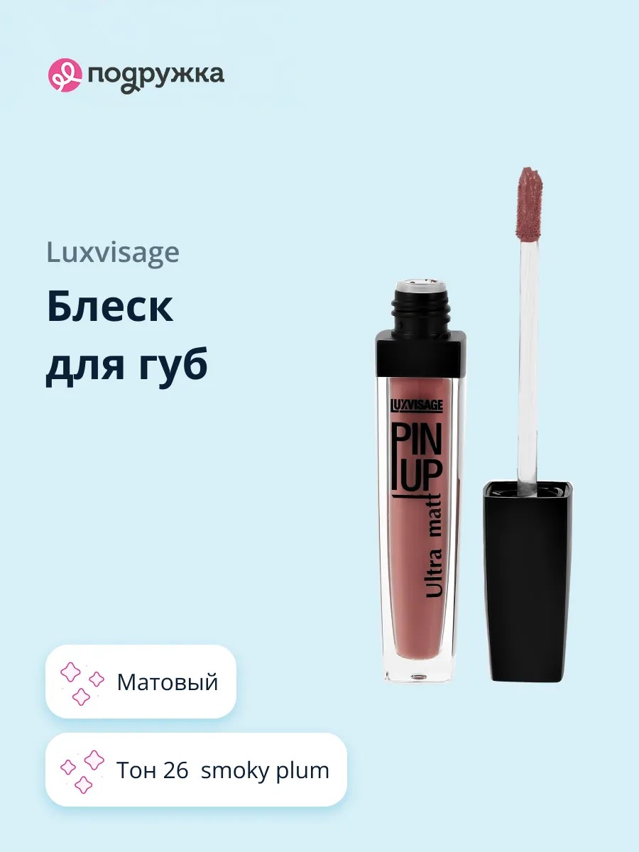 LUXVISAGE PIN-UP Ultra Matte Lip Gloss features a 3-in-1 formula that provides exceptional comfort, long-lasting wear, and a matte finish. The ultra-soft, creamy texture glides on easily, leaving lips smooth and plump. The gloss doesn't bleed and creates a beautiful matte finish with a powdery effect. Contains vitamin E, which nourishes, softens and smoothes the skin of the lips. Ingredients: Isododecane, Pentaerythrityl Tetraisostearate, Beeswax, Caprylic / Capric Triglyceride, Isodecyl Neopentanoate, Isocetyl Stearoyl Stearate, Quaternium-90 Bentonite, Cyclopentasiloxane, Polymethyl Methacrylate, Acrylates / Polytrimethylsiloxymethacrylate Copolymer, Propylene Carbonate, Stearalkonium Bentonite, Silica Dimethyl Silylate, Trimethylsiloxysilicate, Parfum, Tocopheryl Acetate, PEG-8, Tocopherol, Ascorbyl Palmitate, Ascorbic Acid, Citric Acid, Propylparaben, +/- [Mica, CI 12085, CI 15850, CI 16035, CI 19140, CI 42090, CI 45380, CI 45410, CI 73360, CI 75470, CI 77163, CI 77510, CI 77491, CI 77499, CI 77742, CI 77891].