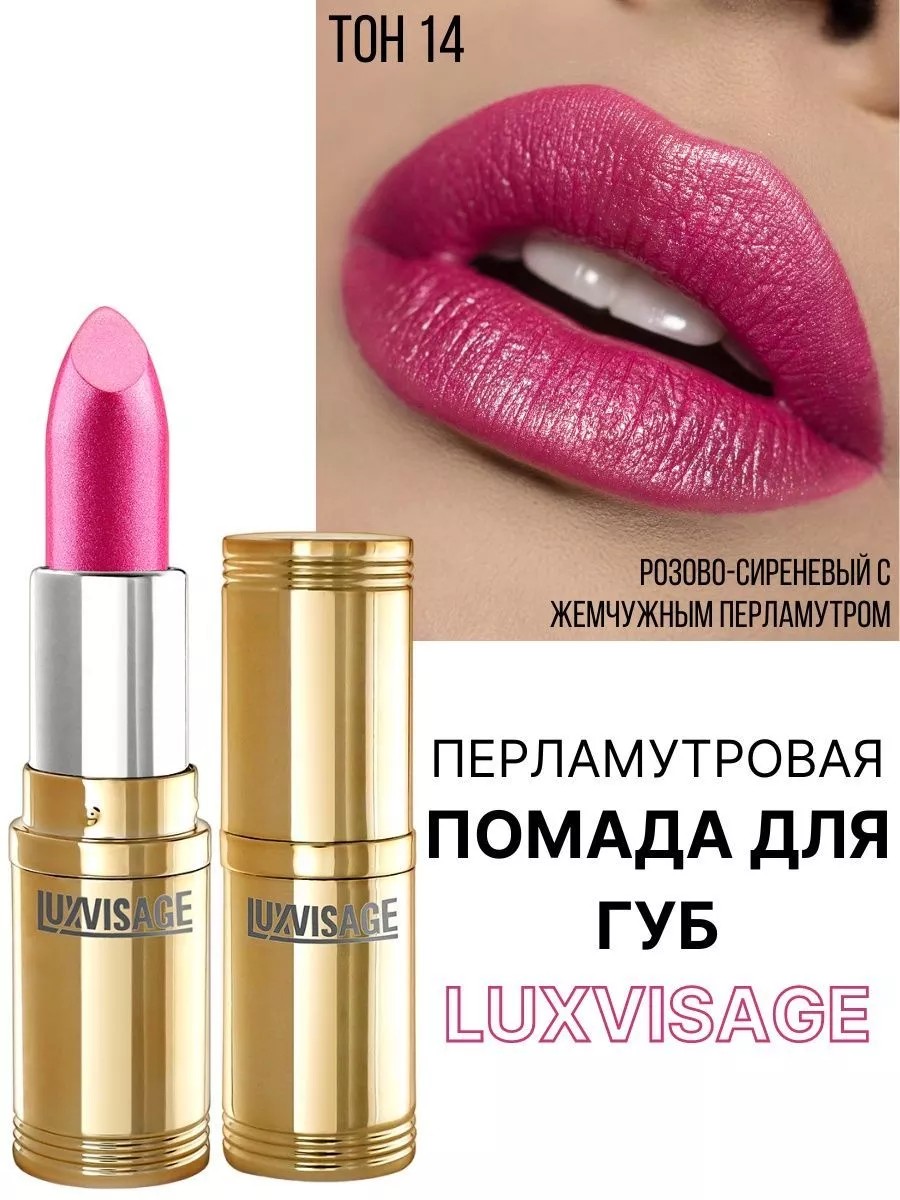 Перламутровая помада для губ бренда LUXVISAGE (Люкс Визаж) Белорусской косметики для макияжа придаст насыщенный цвет, атласный блеск и эффект дополнительного объема с влажным глянцевым финишем. Губная помада содержит широкую цветовую палитру оттенков с высоким содержанием перламутра. Жемчужные глиттеры и мерцающие шиммеры создают оптический эффект объемных губ и ослепительное сияние. Кремообразная текстура обеспечивает легкое и комфортное нанесение, не скатывается, не растекается и сохраняет стойкость в течение нескольких часов. Благодаря большому количеству пигментов и эффектных перламутров обладает повышенной цветопередачей и плотностью покрытия. Мягкая питательная формула легко наносится, хорошо наслаивается, не подчеркивает шелушения, смягчает и ухаживает за нежной кожей, придает им гладкость и шелковистость. Эффективно защищает от обветривания при неблагоприятных погодных условиях.