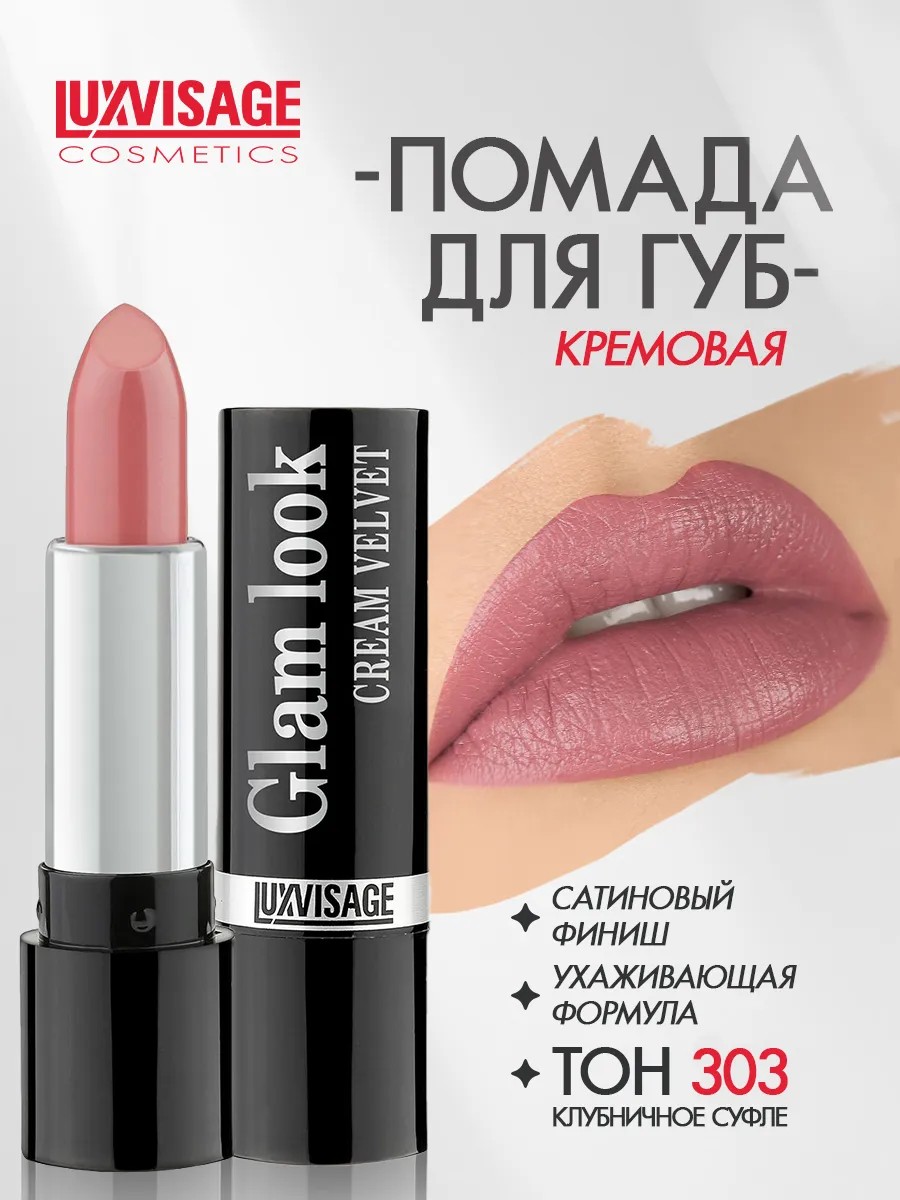 Кремовая помада для губ GLAM LOOK CREAM VELVET бренда Люкс визаж LUXVISAGE Белорусской косметики для макияжа придает невероятно гладкий и ухоженный вид. Высокопигментированная бархатистая кремообразная текстура равномерно ложится плотным комфортным покрытием, не скатывается и не растекается. Ухаживающая формула содержит увлажняющие компоненты, которые интенсивно увлажняют кожу, возвращают гладкость, мягкость и эластичность, а витамин Е сохраняет молодость и красоту. Полувлажный сатиновый финиш с насыщенным цветом создает объем и выразительность, обеспечивает бережный уход. Мягкая питательная формула легко наносится и выравнивает рельеф, заполняет морщинки и трещинки, скрывает шелушения, смягчает и ухаживает за нежной кожей. Губная помада эффективно защищает от обветривания при неблагоприятных погодных условиях.