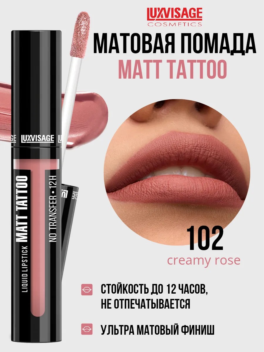 LUXVISAGE Губная помада Matt Tattoo тон 102 creamy rose