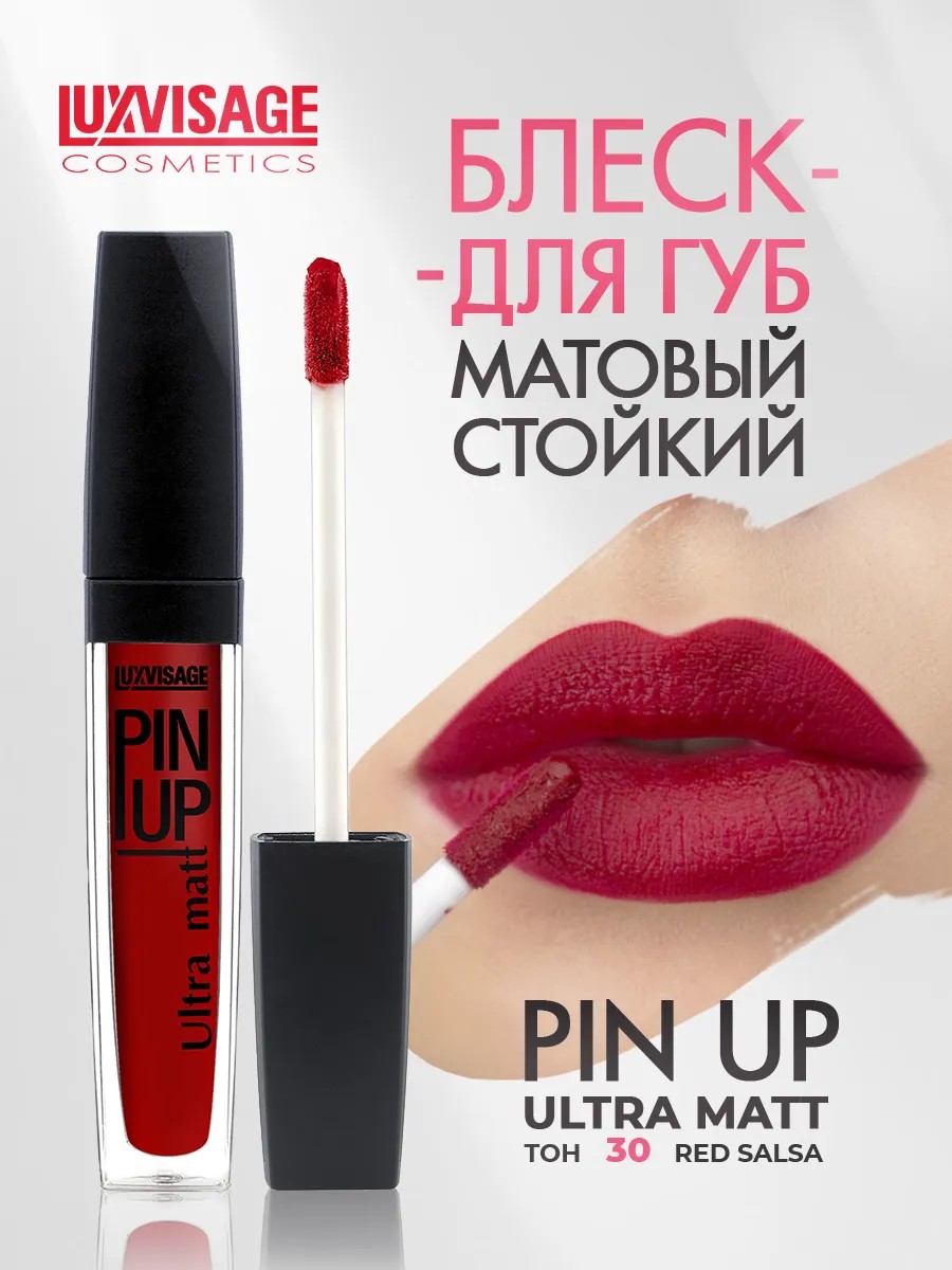 PIN UP liquid lipstick from the Belarusian brand LUXVISAGE glides on easily and evenly, creating a weightless matte veil with a powdery effect, giving lips a smooth and well-groomed look. The delicate, creamy mousse texture feels comfortable, doesn't smudge, and maintains intense color and a defined contour for up to 6 hours. The moisturizing formula doesn't dry or tighten lips. A nourishing complex with vitamin E softens and smoothes the skin, maintains optimal moisture levels, and protects against dryness. Special gloss microspheres fill in wrinkles and folds, restoring smoothness and a velvety feel. The matte finish with dense, rich color adds expressiveness to your makeup. Luxvisage decorative cosmetics are distinguished by their excellent composition and high-quality ingredients. Use alone or with a lip liner. For extra care, apply lip balm first.