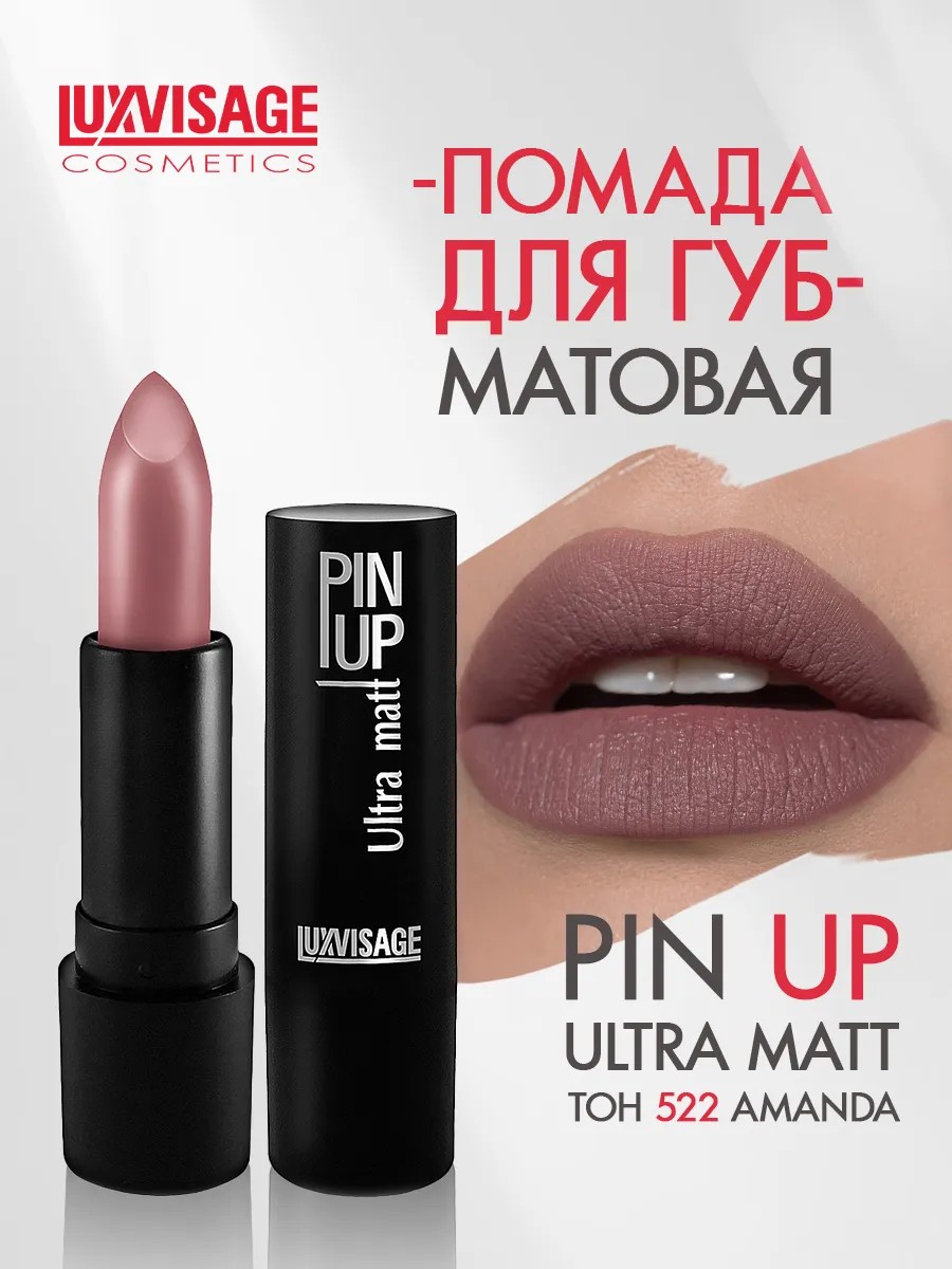 Помада для губ PIN UP Ultra matt бренда Люкс визаж (LUXVISAGE) Белорусской декоративной косметики для макияжа отличается высокой стойкостью в течении всего дня. Пудровые микросферы в составе создают комфортное покрытие с матовым финишем и эффектом мягкого фокуса, заполняют неровности и выравнивают рельеф, делают губки гладкими, объемными и невероятно соблазнительными. Увлажняющая губная помада Люксвизаж прекрасно держит контур, не скатывается и не растекается, не сушит и не стягивает нежную кожу. Легкая кремообразная текстура легко наносится и равномерно распределяется. Пигментированная формула подарит глубокий насыщенный цвет даже при нанесении самым тонким слоем. Питательный комплекс, обогащенный маслами и витамином Е, сохраняет молодость и красоту, смягчает и защищает от обветривания при неблагоприятных погодных условиях. Благодаря богатой палитре оттенков поможет каждой женщине найти свой идеальный вариант.