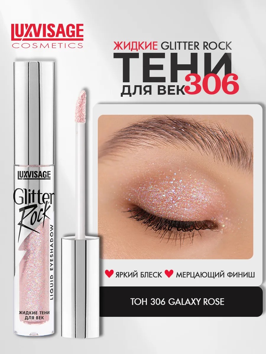 LuxVisage Жидкие тени для век Glitter Rock тон 306 Galaxy Rose