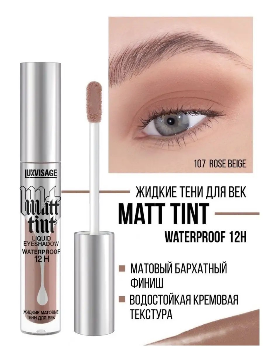 Жидкие тени для век Matt tint waterproof 12H, стойкие, матовые легко наносятся, равномерно ложатся, быстро высыхают и фиксируются на коже, приобретая бархатный матовый финиш. Обладают высокой кроющей способностью и создают плотное и одновременно невесомое покрытие с первого нанесения. Легко и плавно растушевываются как кистью, так и кончиками пальцев. Комфортная флюидная текстура не ощущается на веках в течение дня, не сушит и не стягивает кожу. Тени устойчивы к воздействию воды, сохраняют стойкость и безупречный вид макияжа на протяжении 12 часов, даже на нависших веках и склонной к жирности коже. Не тускнеют, не скатываются, не отпечатываются, не размазываются, не трескаются. Удобный плоский мягкий аппликатор обеспечивает комфортное и точное нанесение оптимального количества теней точечно или на всю поверхность века.