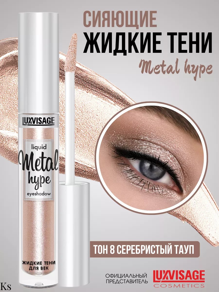 Белорусские жидкие тени для век Metal hype LUXVISAGE восхитительные сияющие оттенки с ярким металлическим сиянием и частицами шиммера, которые создают плотное сияющее перламутровое покрытие с первого нанесения. Яркие тени моно быстро высыхают, сохраняют сияние и яркость цвета до 12 часов. Блестящие тени не ощущаются на веках, легкая и невесомая текстура. Кремовые мерцающие тени легко и быстро наносятся идеально ровным слоем, равномерно наслаиваются и растушевываются до желаемой плотности - от яркого сияния до деликатно светящейся вуали. Содержат увлажняющие и смягчающие компоненты, которые обеспечивают бережный уход за нежной кожей. Кисточка аппликатор удобна для нанесения и создания четкой линии любой толщины, а также наслаивания и растушевки. Нанесите аппликатором либо кистью для плотного сияющего покрытия, для полупрозрачного деликатного свечения растушуйте однотонные тени подушечками пальцев. Стойкие тени для век Metal Hype Люкс Визаж легко удаляются любым средством для снятия макияжа. Не нужно наносить базу под тени для век. Жидкие тени металлик хит отлично подойдут для ежедневного макияжа и дополнят вечерний образ на торжество. Для эффективного использования нанесите аппликатором либо кистью, для полупрозрачного свечения необходимо растушевать подушечками пальцев. Декоративная белорусская косметика - отличный подарок для женщин на день рождения, на День Святого Валентина, на 8 Марта, новый год и просто приятный сюрприз без повода. Благодаря своей уникальной формуле, эти тени с блестками жидкие, но при этом быстро высыхают и образуют стойкое покрытие. Они идеально подойдут для тех, кто ценит качественную косметику и стремится к созданию неповторимого образа.