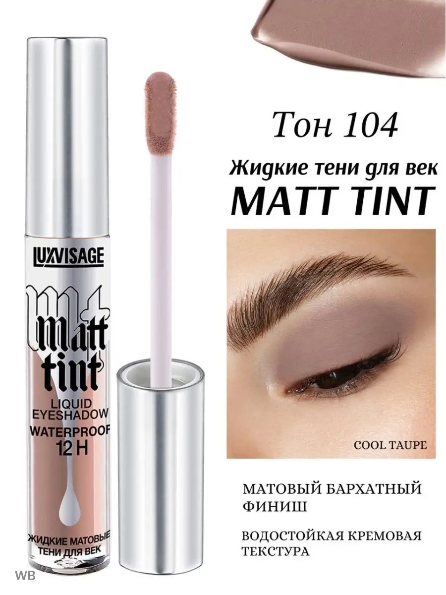 Luxvisage Matt tint liquid eyeshadows are easy to apply, lay down evenly, dry quickly and fix on the skin, acquiring a velvety matte finish.