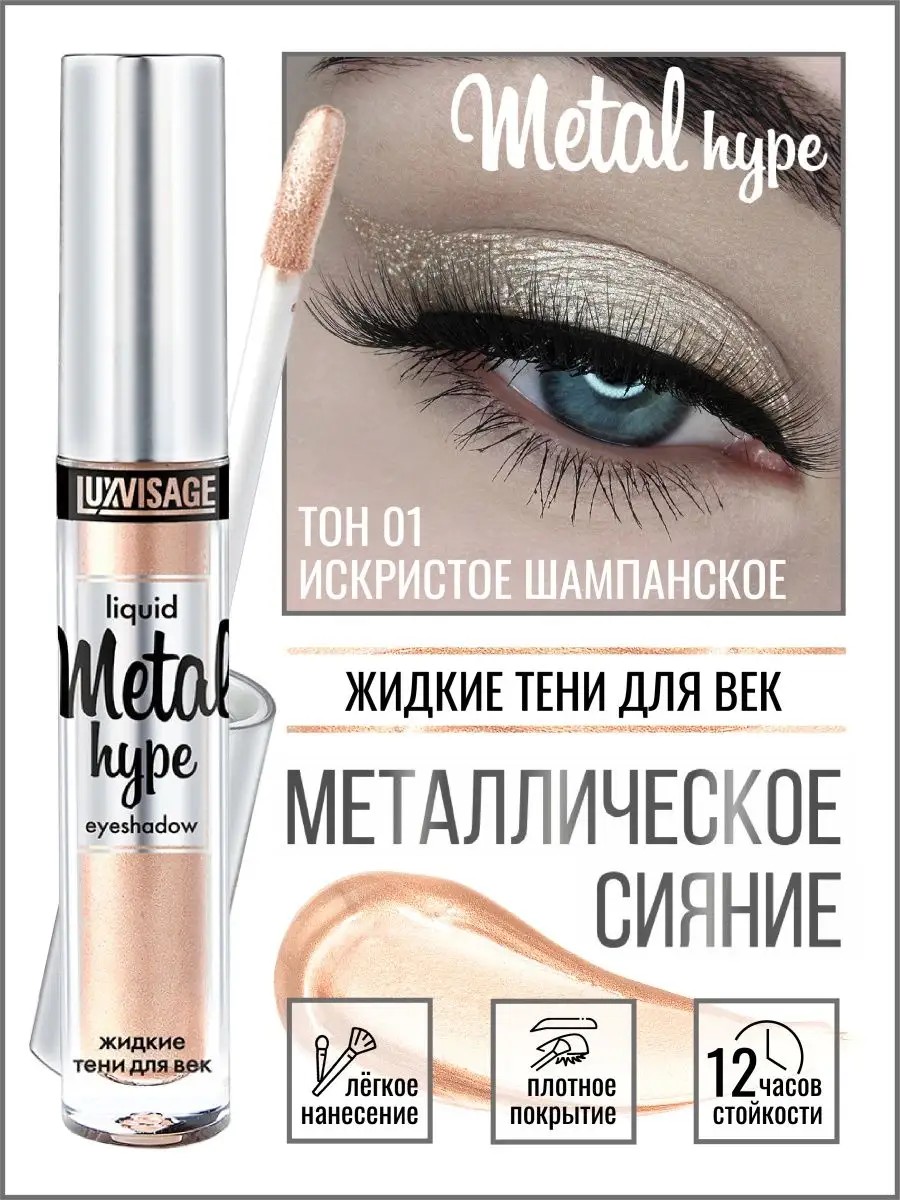 Shimmering liquid eyeshadow "Metal Hype" from the Belarusian brand Luxvisage will become an indispensable item in your makeup bag. Long-lasting liquid eyeshadow "Metal Hype" is a trendy product for dramatic eye makeup with a vibrant metallic shine. This eyeshadow is ideal for both everyday and evening makeup. Thanks to its unique texture, it applies easily and blends perfectly, providing even coverage and a long-lasting effect. It dries quickly and maintains vibrant color and shine for up to 12 hours. Absolutely light and weightless, it feels almost imperceptible on the eyelids. No primer is required. It is easily removed with any makeup remover. Contains moisturizing and softening ingredients. This liquid eyeshadow has a gorgeous shine, making it an excellent choice for those looking to add brightness and expressiveness to their look. Women's decorative makeup is perfect for creating a variety of effects, from a subtle smoky finish to a rich metallic shine. These eyeshadows will enhance the beauty of your eyes and make you stand out in any setting. Belarusian women's cosmetics from Luxvizage are not only high-quality but also affordable. These glittery liquid eyeshadows provide long-lasting wear without smudging or fading. These long-lasting eyeshadows are an excellent gift option for a friend or colleague on March 8th. Delight your loved ones—your mother, friend, or colleague—with this stylish and practical makeup accessory. Gifts for March 8th should always be special, and these glittery eyeshadows will be the perfect addition to any festive look. Add these eyeshadows to your collection and discover new horizons in the world of decorative cosmetics. Take a step toward bright and stylish looks with "Metal Hype" liquid eyeshadows. From Belarusian cosmetics Luxvisage—it's not just cosmetics, it's your next level of makeup!