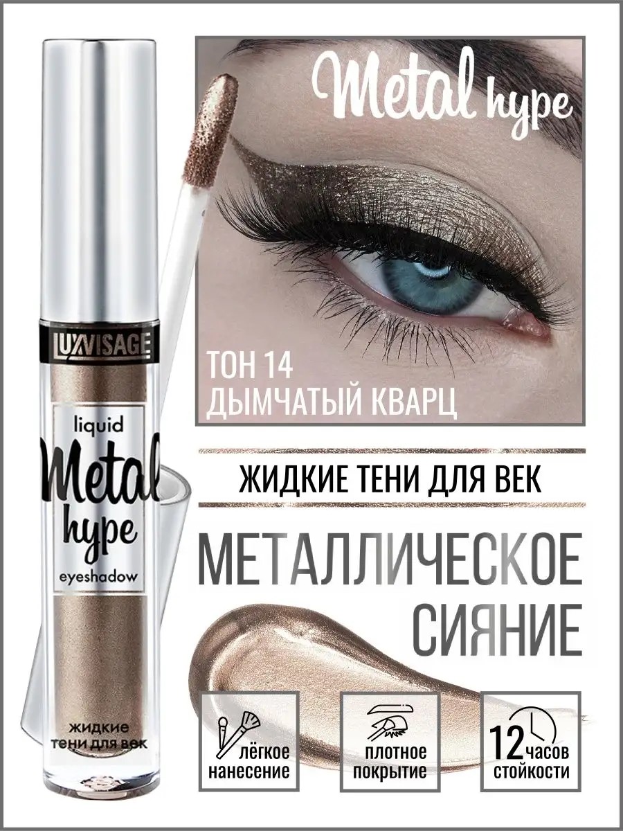 Shimmering liquid eyeshadow "Metal Hype" from the Belarusian brand Luxvisage will become an indispensable item in your makeup bag. Long-lasting liquid eyeshadow "Metal Hype" is a trendy product for dramatic eye makeup with a vibrant metallic shine. This eyeshadow is ideal for both everyday and evening makeup. Thanks to its unique texture, it applies easily and blends perfectly, providing even coverage and a long-lasting effect. It dries quickly and maintains vibrant color and shine for up to 12 hours. Absolutely light and weightless, it feels almost imperceptible on the eyelids. No primer is required. It is easily removed with any makeup remover. Contains moisturizing and softening ingredients. This liquid eyeshadow has a gorgeous shine, making it an excellent choice for those looking to add brightness and expressiveness to their look. Women's decorative makeup is perfect for creating a variety of effects, from a subtle smoky finish to a rich metallic shine. These eyeshadows will enhance the beauty of your eyes and make you stand out in any setting. Belarusian women's cosmetics from Luxvizage are not only high-quality but also affordable. These glittery liquid eyeshadows provide long-lasting wear without smudging or fading. These long-lasting eyeshadows are an excellent gift option for a friend or colleague on March 8th. Delight your loved ones—your mother, friend, or colleague—with this stylish and practical makeup accessory. Gifts for March 8th should always be special, and these glittery eyeshadows will be the perfect addition to any festive look. Add these eyeshadows to your collection and discover new horizons in the world of decorative cosmetics. Take a step toward bright and stylish looks with "Metal Hype" liquid eyeshadows. From Belarusian cosmetics Luxvisage—it's not just cosmetics, it's your next level of makeup!