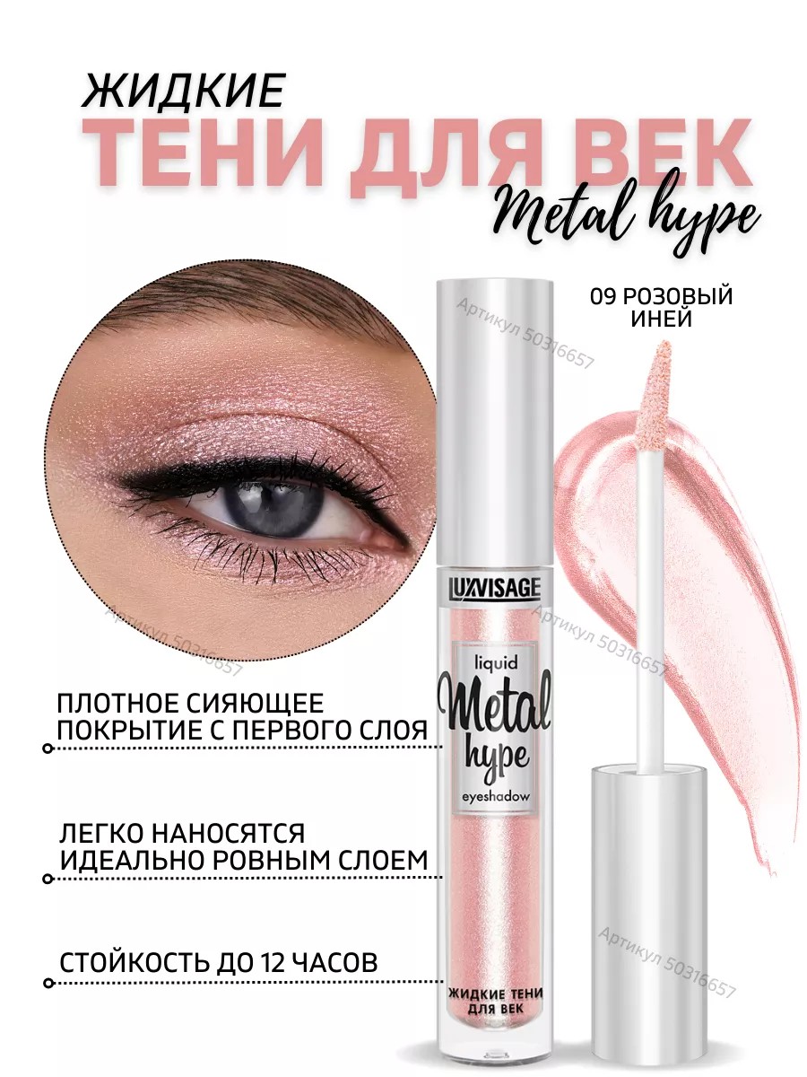 Metal Hype Long-Wear Liquid Eyeshadow is a trendy product for dramatic eye makeup with a vibrant metallic shine. Rich colors with a high content of pearlescent pigments create a dense, radiant finish from the first layer. The liquid gel texture of Metal Hype eyeshadow allows you to create stunning eye makeup in just a couple of minutes. It applies incredibly easily and quickly in a perfectly even layer, builds evenly, and blends to the desired consistency, from a vibrant shimmer to a delicately luminous veil. The eyeshadow dries quickly and maintains its vibrant color and shine for up to 12 hours. Absolutely light and weightless, it feels almost imperceptible on the eyelids. No primer is required. It removes easily with any makeup remover. Contains moisturizing and softening ingredients. ADVANTAGES: - Rich shades with a high pearl content - Dense, radiant coverage from the first coat - Easy to apply in a perfectly even layer - Lasts up to 12 hours. LuxVisage, LuxVisage, makeup, cream, base, foundation, shading, long-lasting, makeup artist, bestseller, Belarusian cosmetics, budget eyeshadow, bestseller, bestseller
