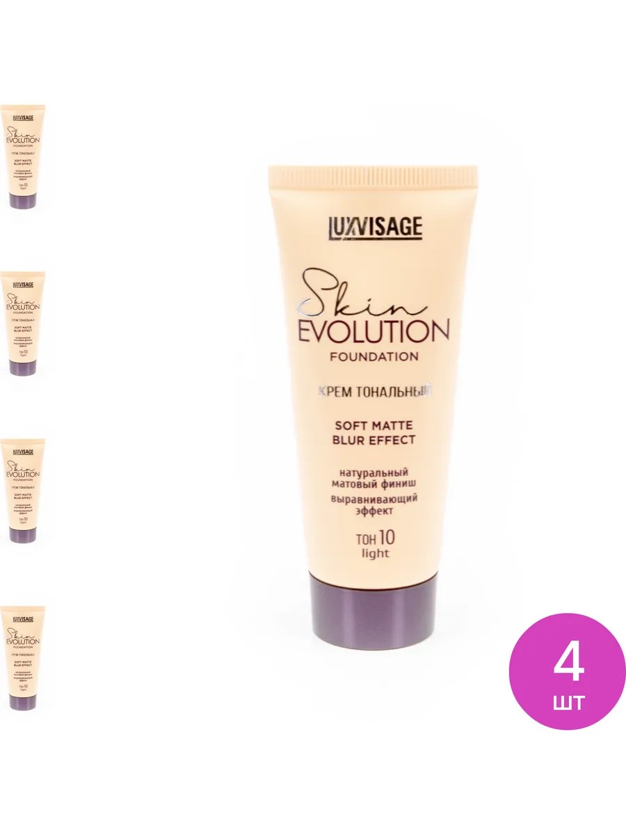 LuxVisage / ЛюксВизаж Тональный крем для лица Skin Evolution Soft Matte Blur Effect 10 для любого типа кожи жидкий светло-бежевый 35мл / тональное средство. Комплект состоит из 4 шт. Цена за комплект. Любая девушка мечтает убрать несовершенства кожи лица без косметологического вмешательства! Для таких случаев изготовили тональное средство кремовой текстуры от LuxVisage. Матирующий тональный крем для всех типов кожи, выравнивает тон и рельеф кожи, контролирует блеск и появление элементов акне, защищает от агрессии внешней среды. Тональная сыворотка обеспечивает комфортное ощущение для кожи в течение дня и не забивает поры. Формула состоит из увлажняющего крема. Жидкий тональный крем подстраивается под цвет и текстуру кожи. Благодаря тональному крему LuxVisage ваша кожа станет гладкой и сияющей! Тональный крем для лица / тональная основа для лица / тональный крем для лица увлажняющий / тональная основа / светлый тональный крем / тональное средство для лица / декоративная косметика.
