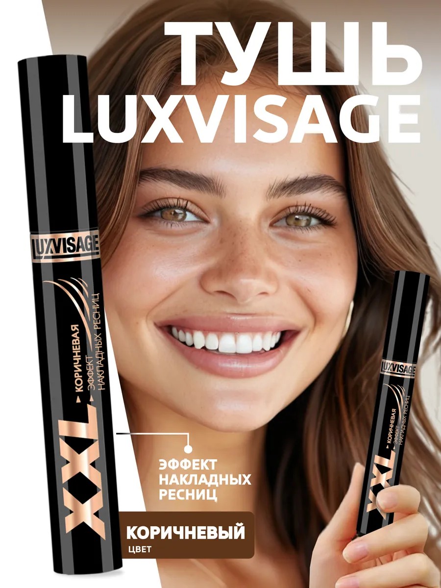 Коричневая тушь для ресниц удлиняющая XXL Суперобъем Эффект накладных ресниц бренда LUXVISAGE (Люкс визаж) Белорусской декоративной косметики для макияжа глаз придает максимальный объем, хорошо удлиняет и разделяет с первого нанесения. Универсальный насыщенный оттенок придаст вашему взгляду выразительность и глубину, идеальный вариант в стиле nude, образ получается более естественным и натуральным. Легкая кремовая текстура туши Люксвизаж на водной основе позволяет наносить в несколько слоев для достижения эффекта накладных ресниц. Силиконовая конусовидная щеточка с упругими миниатюрными щетинками равномерно прокрашивает даже непослушные реснички, бережно ухаживая за каждой. Благодаря стойкой формуле фиксирует форму на весь день, не размазывается, не осыпается и отпечатывается в течении всего дня. Приподнимает и слегка подкручивает от самых корней, не оставляя комочков.