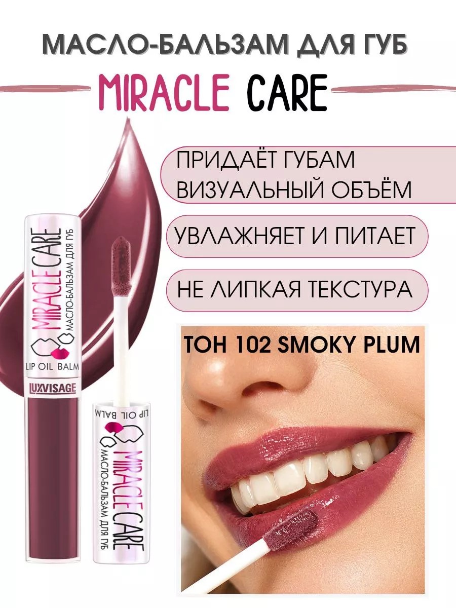 The magical gloss oil from LUXVISAGE gives your lips visual volume and a delicate shade.