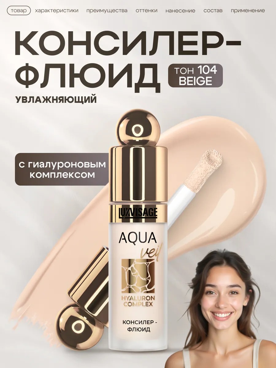 Декоратиная косметика luxvisage предлагает 4 оттенка в линейке консилера – флюида: самый светлый консилер в оттенке 01, самый темный консилер в палитре, представлен в оттенке 104.
