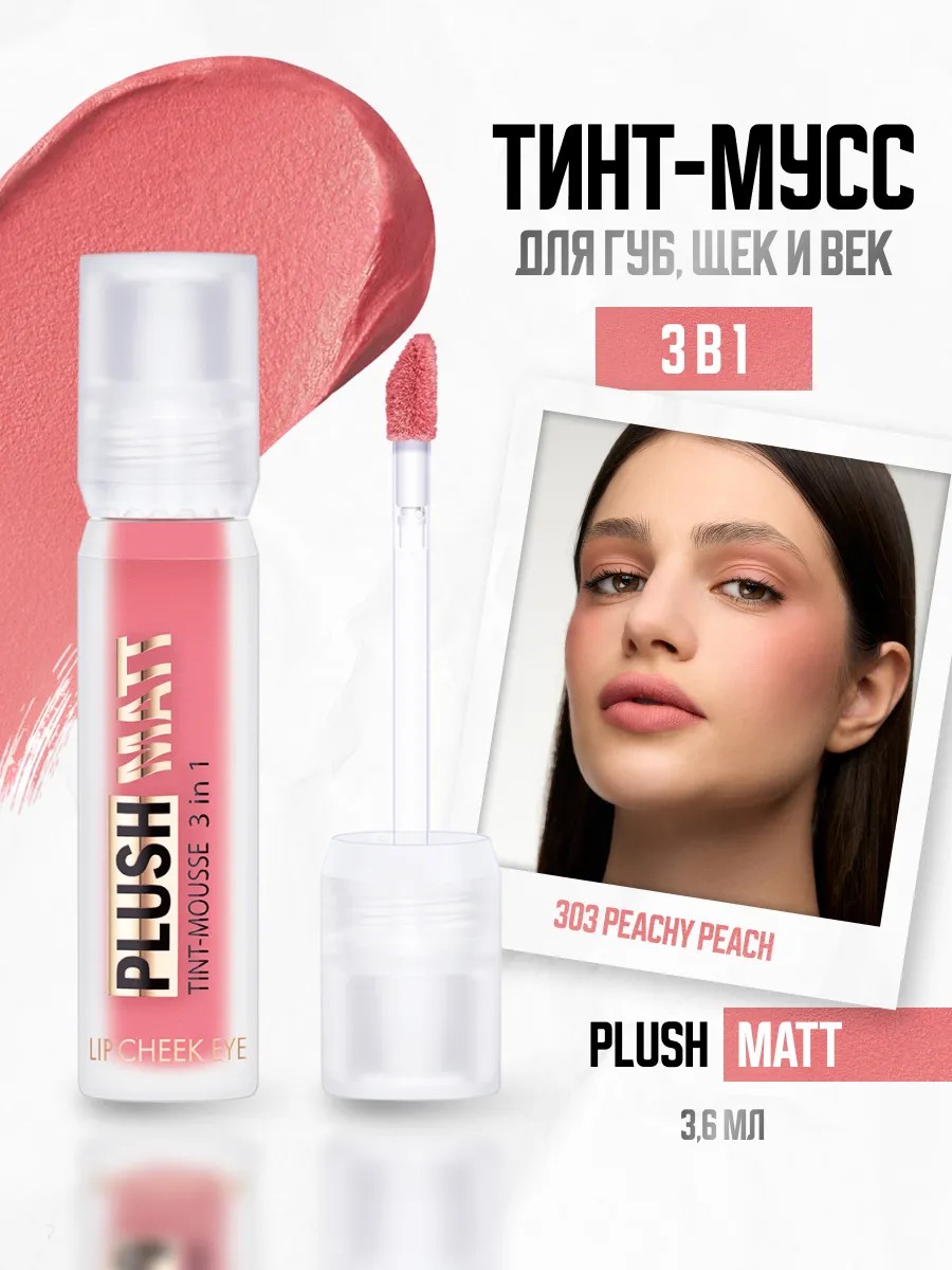 Откройте безграничные возможности макияжа с универсальными муссовыми румянами PLUSH MATT 3в1! Этот инновационный продукт – ваш ключ к гармоничному образу с безупречным бархатисто-матовым финишем и эффектом мягкого фокуса, визуально смягчающим черты лица. Выразительная палитра из 6 трендовых оттенков – от нежного 301 ROSY ROSE и утонченного 302 LILY LILAC до солнечного 303 PEACHY PEACH, теплого 304 COFFEE TOFFEE, глубокого 305 BROWNIE BROWN и загадочного 306 PLUMY PLUM – идеально подходит для любого тона кожи и настроения.