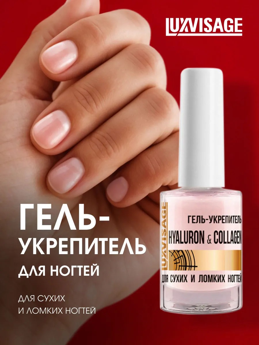 LuxVisage Гель укрепитель Hyaluron & Collagen для сухих и ломких ногтей, тон нежный розовый прозрачный. Объём: 9гр.