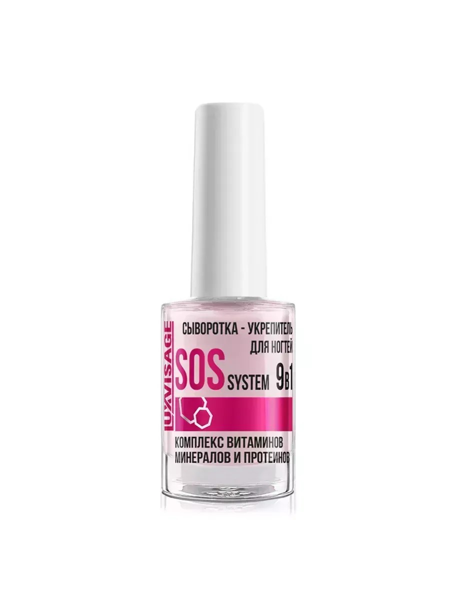 SOS System 9-in-1 Strengthening Serum - Luxe Wiz, 9 ml. A multifunctional product for rapid nail restoration. Deeply nourishes, moisturizes, and restores the nail plate. Fills microdamage, stimulates healthy nail growth. Contains an active complex of natural proteins, minerals, copper, iron, magnesium enzymes, acetyl methionine, calcium, and vitamins E, C, and F.