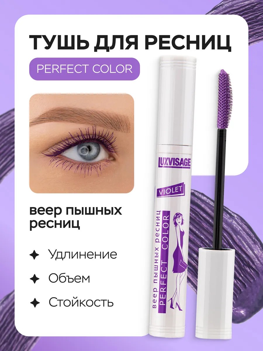 LUXVISAGE Тушь для ресниц PERFECT COLOR фиолетовая