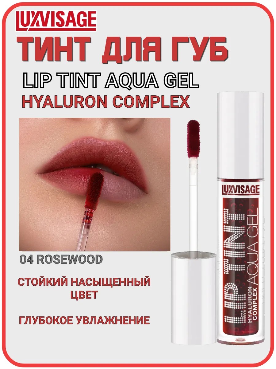 Тинт для губ LIP TINT AQUA GEL hyaluron complex Luxvisage уникальный продукт тинт для губ с матовым покрытием, который не только усиливает естественный оттенок губ, но и придает им яркость и выразительность. Тинт Luxvisage отличается высокой концентрацией пигментов, что обеспечивает стойкость цвета и возможность регулировать насыщенность оттенка по вашему желанию. Гелевая текстура тинт для губ luxvisage легко наносится на губы, равномерно распределяется, не растекается за контур и быстро впитывается, не создавая ощущения липкости или дискомфорта.
