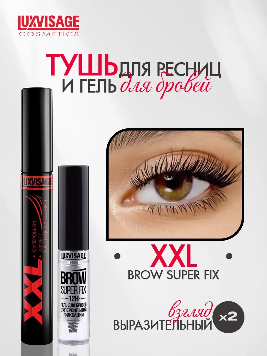 LUXVISAGE Набор Тушь для ресниц XXL+Гель для бровей BROW SUPER FIX 12H