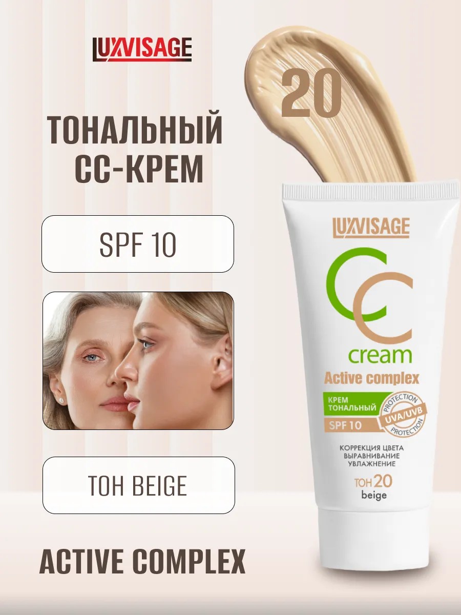 Тональный CC крем для лица Active complex SPF 10, тон 20