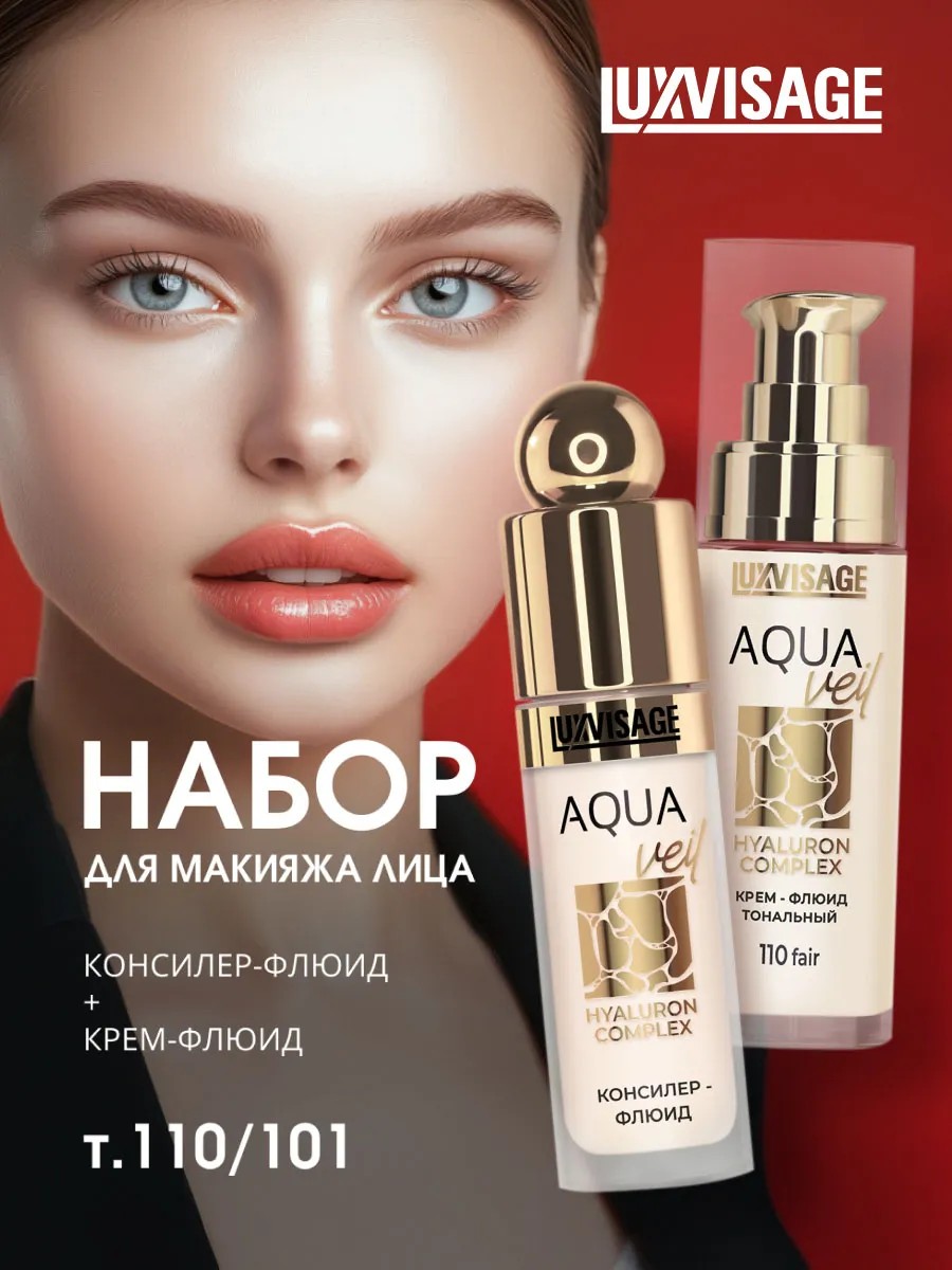 1) LuxVisage Крем-флюид тональный Aqua Veil Hyaluron Complex, тон 110 Fair / светло-бежевый. Объём: 30гр.
