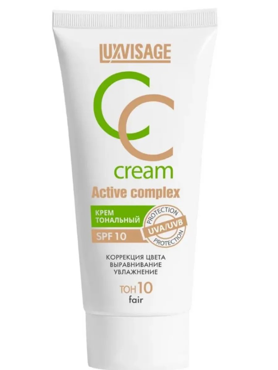 Luxvisage Тональный крем тон 10 Fair CC Active complex, 35 г. Идеально подстраивается под тон кожи, улучшает её естественный оттенок, обеспечивает максимальную цветокоррекцию. Уменьшает видимость расширенных капилляров, покраснений, скрывает пигментацию. Уникальные оптические микросферы, входящие в состав формулы превосходно выравнивают текстуру кожи, заполняют поры и мелкие морщинки. Создают естественный полуматовый финиш. Содержит солнцезащитный фактор SPF 10. Защищает кожу от УФ-излучения широкого спектра, вредного воздействия UVA и UVB-лучей, фотостарения. Обладает легкой кремовой текстурой, не сушит кожу и дарит ей ощущение комфорта благодаря увлажняющему комплексу ElfaMoist. Отлично наносится и распределяется. Обладает средней степенью покрытия, позволяя наслаивать и регулировать его плотность. Стойко держится на коже весь день. Идеально подходит для сухой, чувствительной, смешанной и возрастной кожи.