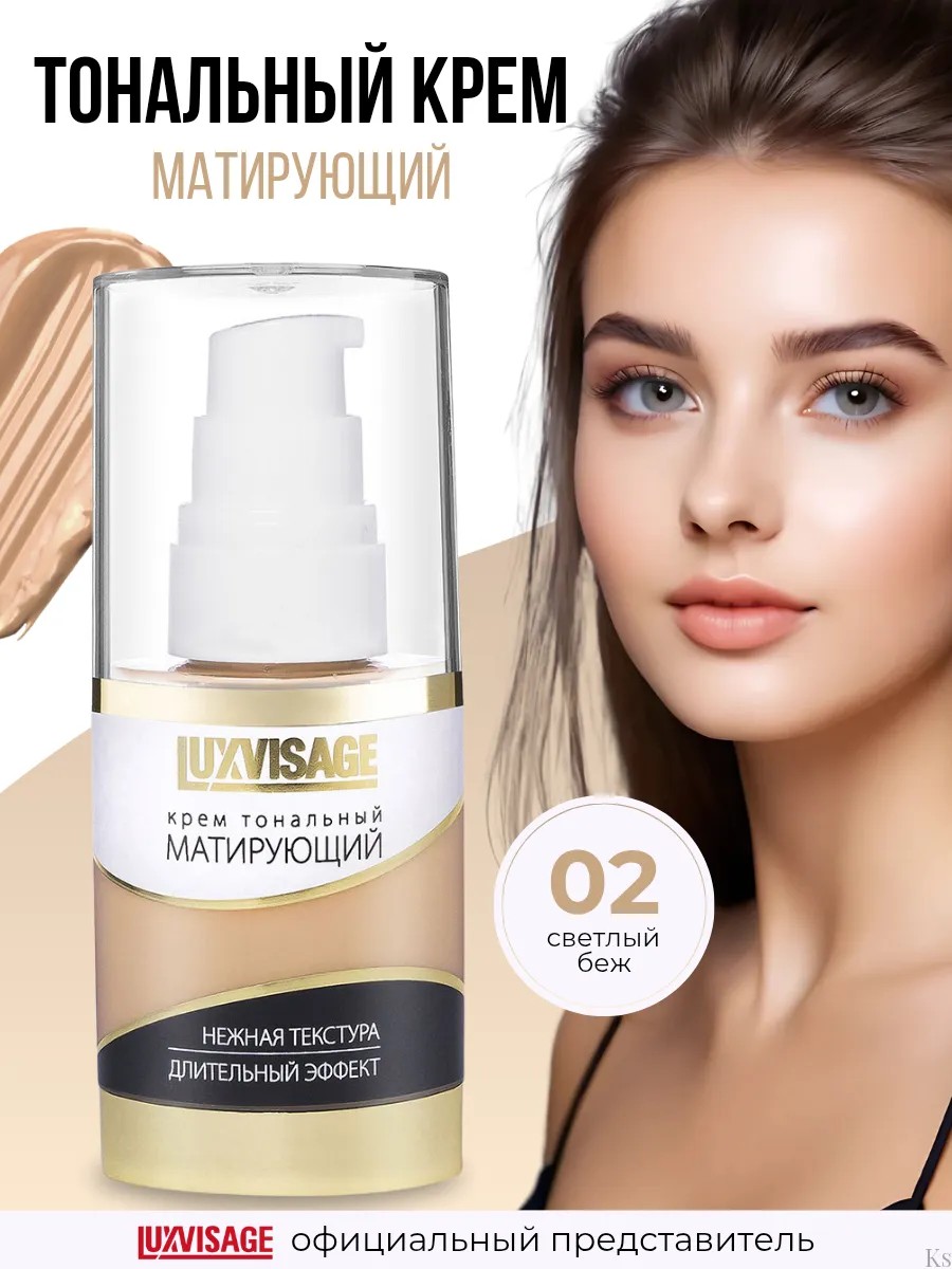 Matifying face foundation from the Belarusian cosmetics brand LUXVISAGE. The foundation has a medium coverage, evens out skin tone, conceals minor skin imperfections, redness, enlarged pores and gives a natural matte finish. Thanks to the cream, the skin looks smooth and even, acquires a fresh and well-groomed appearance.